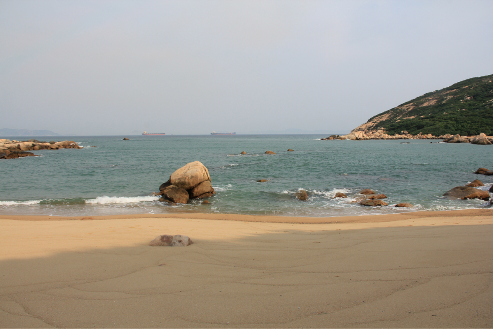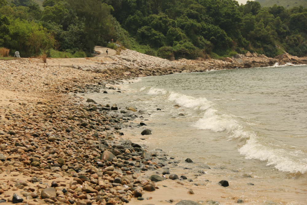我喝了凉茶一时间有点无欲无求,于是也不急着赶去索罟灣,因为这时才中午1:30的样子,午饭有点晚,晚饭未免太早,而且我也没感觉太饿,虽然早上9点吃了一个三明治和后来的一碗豆腐花而已。 于是我开始往西行,去芦须城泳滩。 这条路地图上有但是不是我之前说的水泥大路。 这片沙滩其实非常不错比之前看到的两片都要好,而且也有救生员和免费淡水冲琳,只是地方比较偏,所以基本没人来,所以建议大家走到这里来享受阳光海滩。