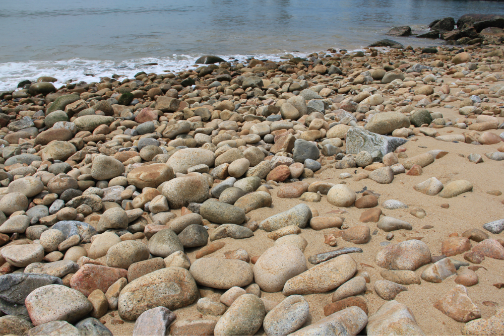 滩边的有巨大的鹅软石,可以堆东西玩,也可以比一比谁堆得高。