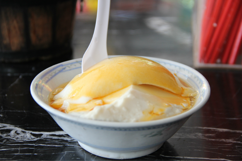 石头玩累了继续往南走,这里有豆腐花吃,听吃货小桶说,TVB里人都爱吃这里的豆腐花。豆腐花是超级冰冰的那种,撒上一种橘黄色的粉后味道极佳,入口爽滑清爽。