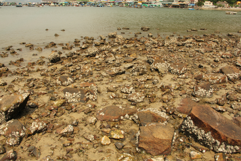 过了神风动继续前行就是索罟灣滩了,这里是个淤泥滩,虽然不适合下水但却很适合生蚝这东西生长,一样看去石头上满是生蚝的壳,渔民则在泥中打捞大把的新鲜牡蛎。