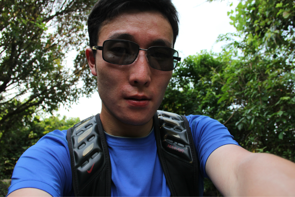 这张是我很虚脱的时候给自己照的, 当时没走1 0步路就感觉很累必须休息。但是,我想这不是办法,必须坚持。 我引导自己去想晚上的海鲜大餐和回答家中吹着空调喝着冰饮料写今日游记时的惬意。之后的这40分钟路真的很艰难,我的思维开始缓慢,脚步变成了机械运动。所以对不住各位,没有留下多少照片。