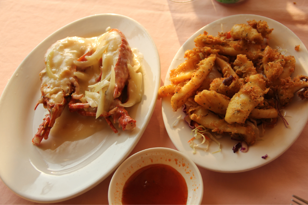征服了这座离岛,终于是时候犒劳一下自己了,在索罟灣海鲜一条街的地方我找到一家叫做森记的seafood restaurant 点了芝士小青龙一只(150HKD)招牌炸鱿鱼(45HKD)和蟹膏炒饭(45HKD)以及饮料,貌似还有10%的服务费。 30分钟被我像畜生一样吃的精光,老板娘看着我都想笑了,因为我这个基本上就是别人点的2人套餐的量。