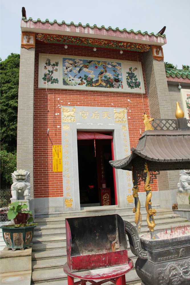 沿着大街向东行,就能到索罟灣边的海鲜一条街。在此之前会见到一座天后宫庙,庙里供奉的是妈祖,侧面还有一条长达2米多的银龙鱼标本,是2001年时有道此处被渔民捕获的,据说这大的银龙鱼世界上一共才有5条。