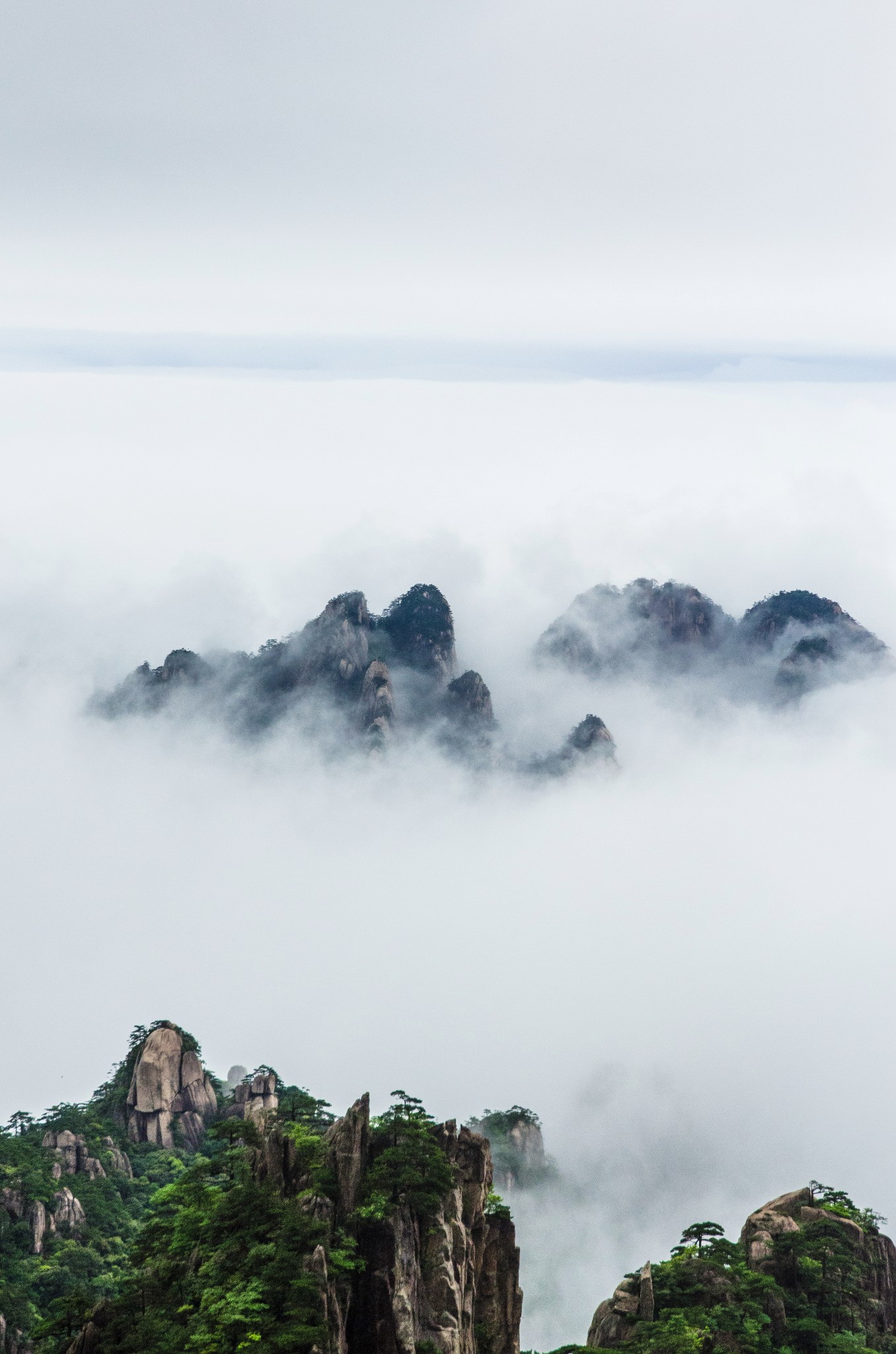 才下缆车,挤挤擦擦出来,哇 哇 哇,震惊了,不啻当头棒喝啊:云海翻滚,埋山湮岭,飞鸟几点,蓝天一线,这一切,浩淼弥漫,直抵天边。