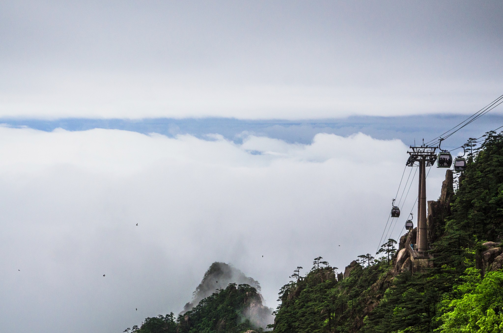 到站后,步行前往索道入口,还得买票,然后,腾云驾雾、白日飞升-----