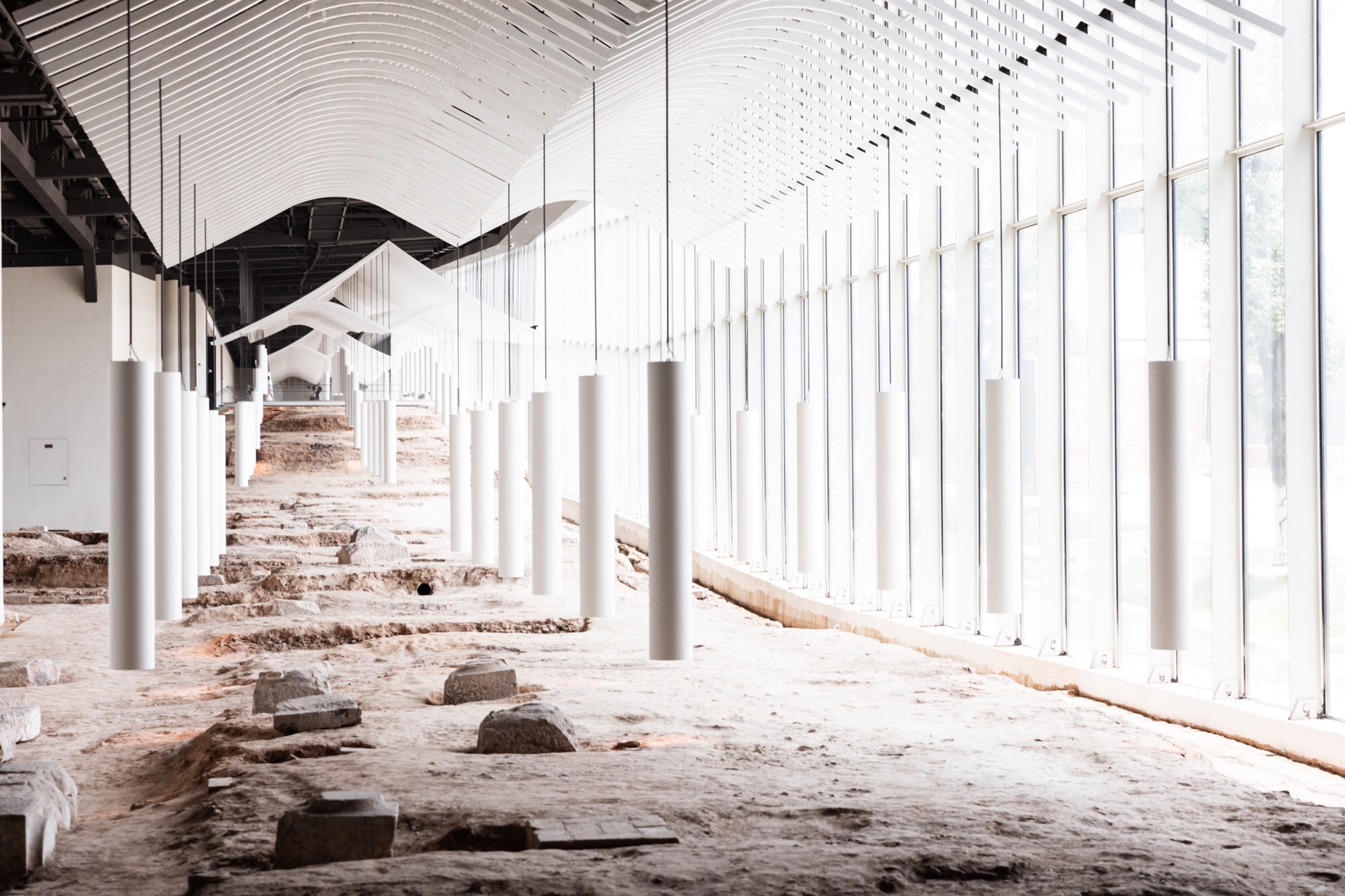与此同时,原先北画廊遗址处也被装饰得美轮美奂。白色的悬柱和顶梁骨架宣示着它存在的历史。