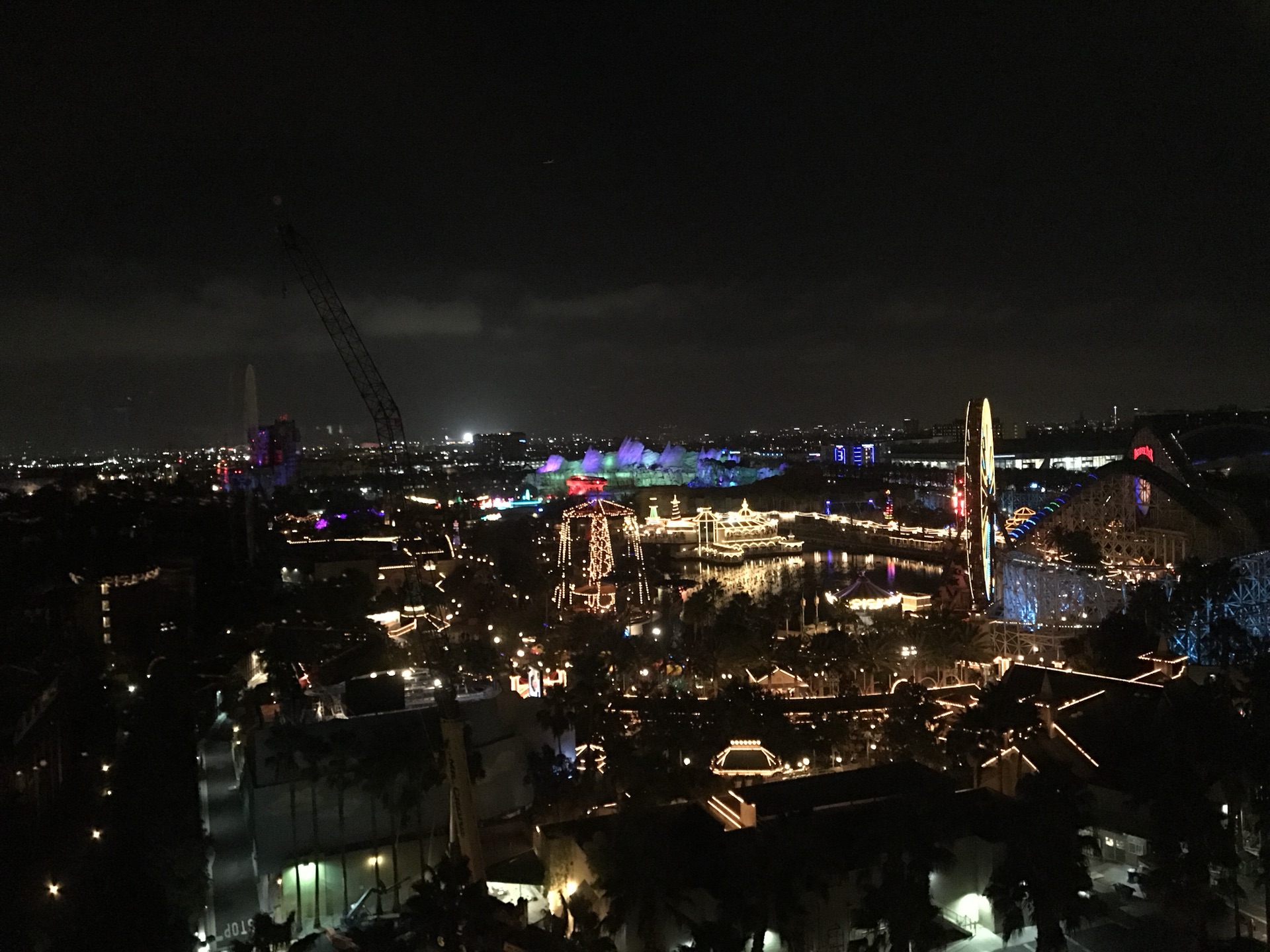 迪斯尼酒店房间不错,窗口正对Disney wonderland。可惜当晚风太大,烟火表演取消了。