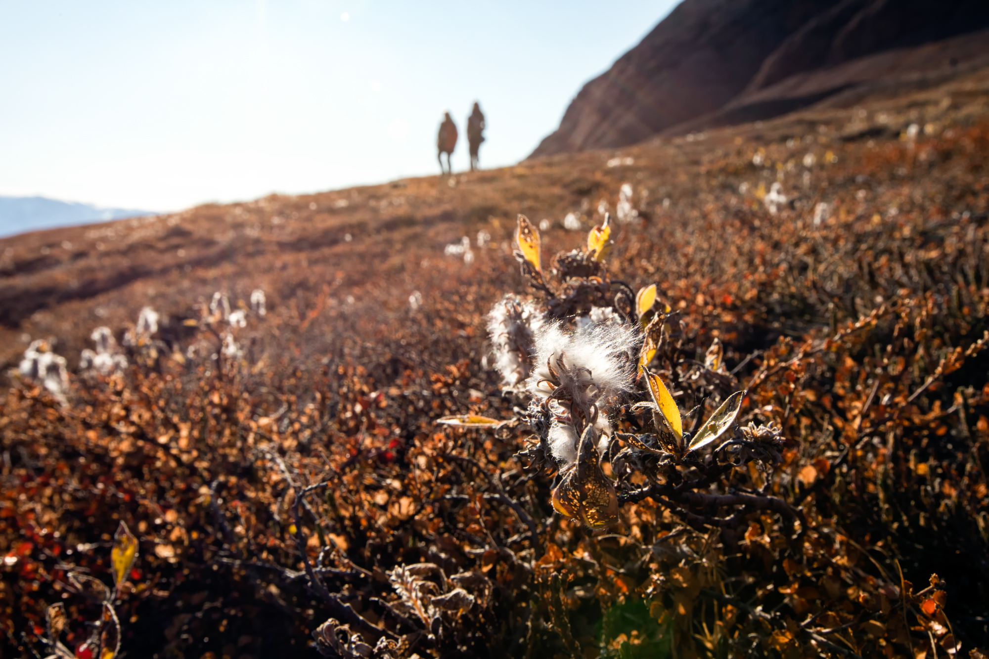 9月初的格陵兰,夏末的尾巴,极地植物顽强的生长绽放,在长达将近2个月的极昼时间里贪婪地获取着阳光赐予的养分与温暖。当漫长的冬季降临,极夜笼罩这片大陆,陪伴他们的除了厚厚的白雪狂风,就是漫天飞舞的极光。