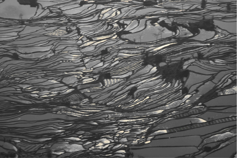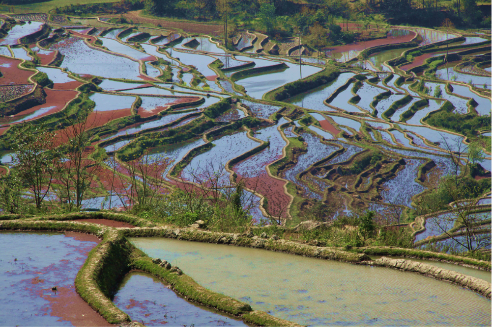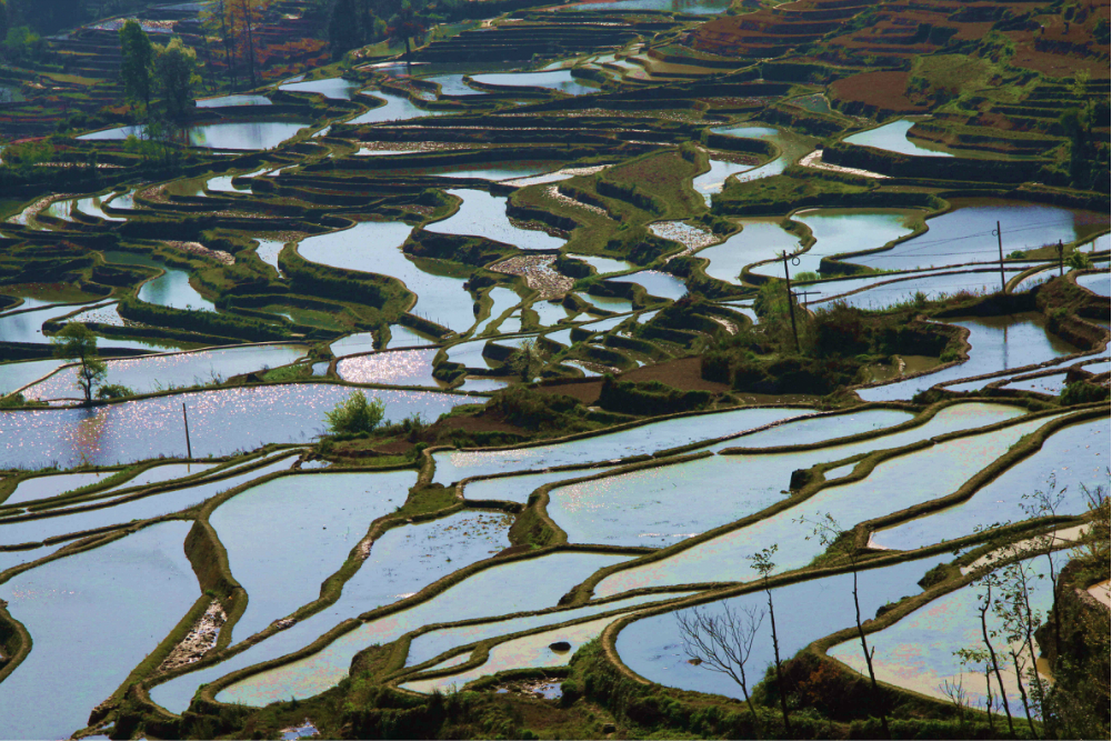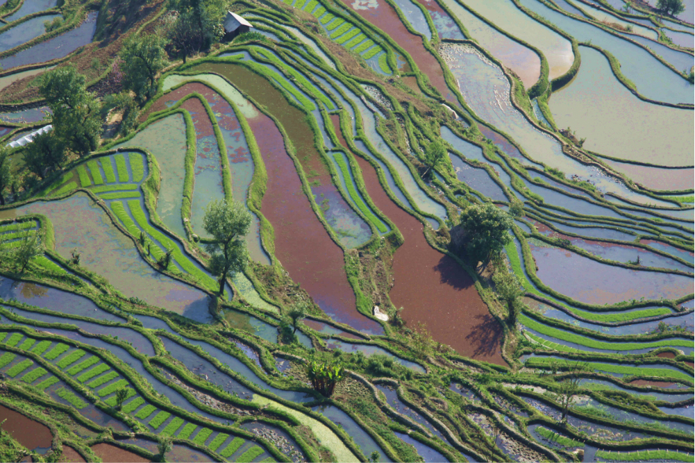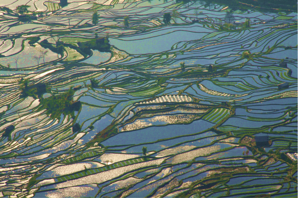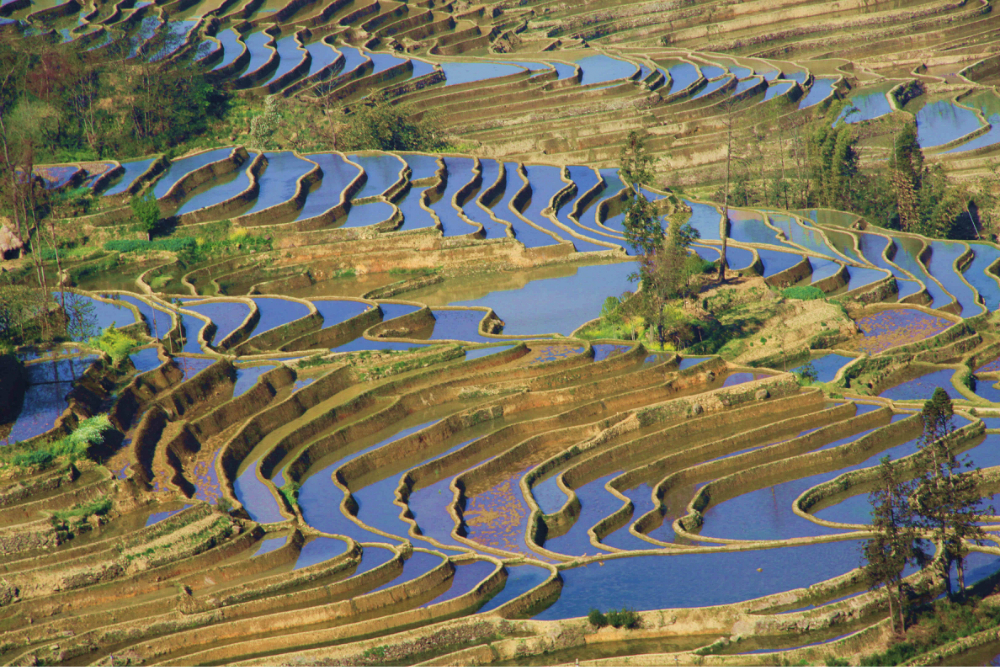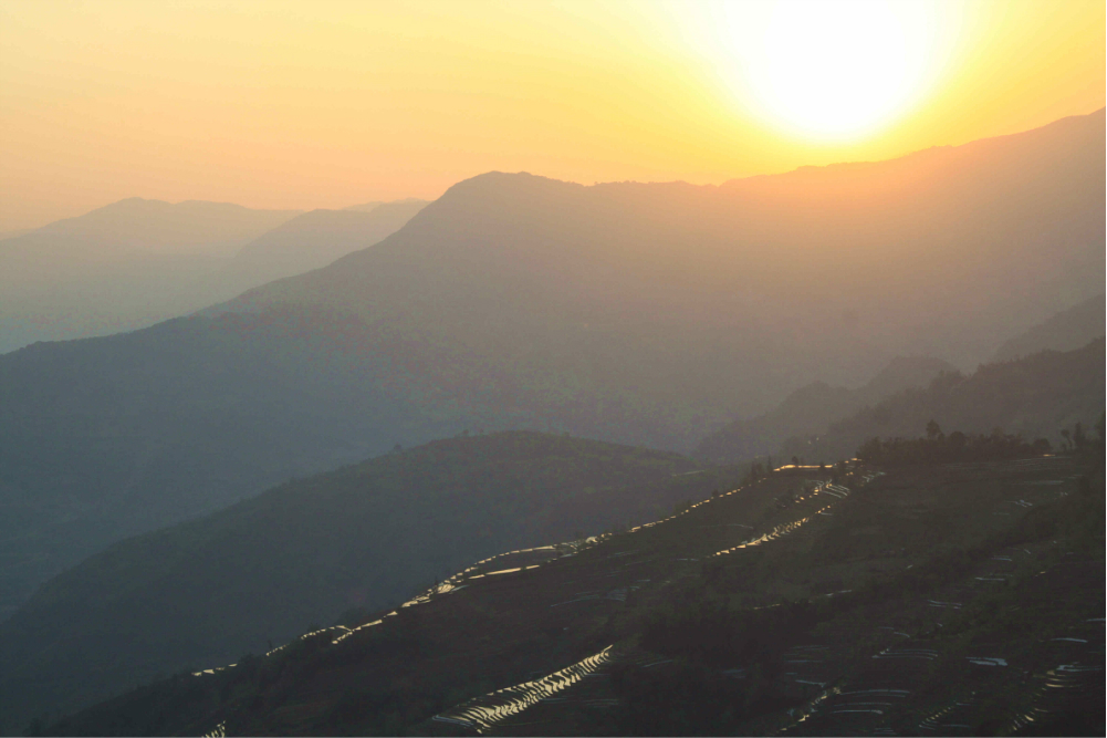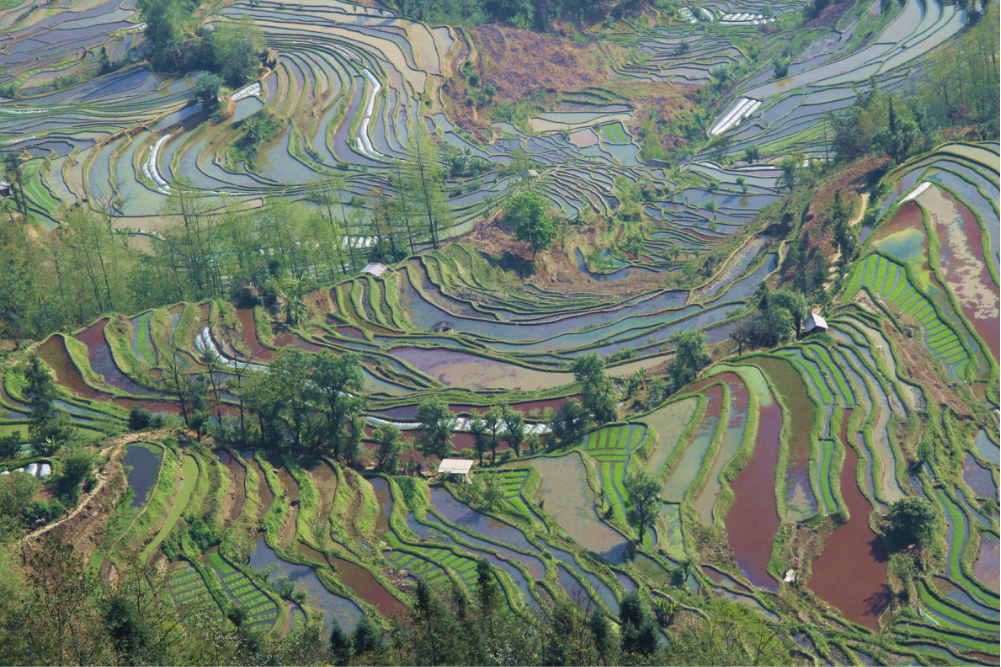 40分钟后,到坝达景区。沿不宽的山间小路进去一千米左右,层层叠叠的梯田就呈现在眼前。从山脚到山顶,足有上千级,从近处到天际,不下数万亩。哈尼族人民的惊世杰作,令人叹为天作。