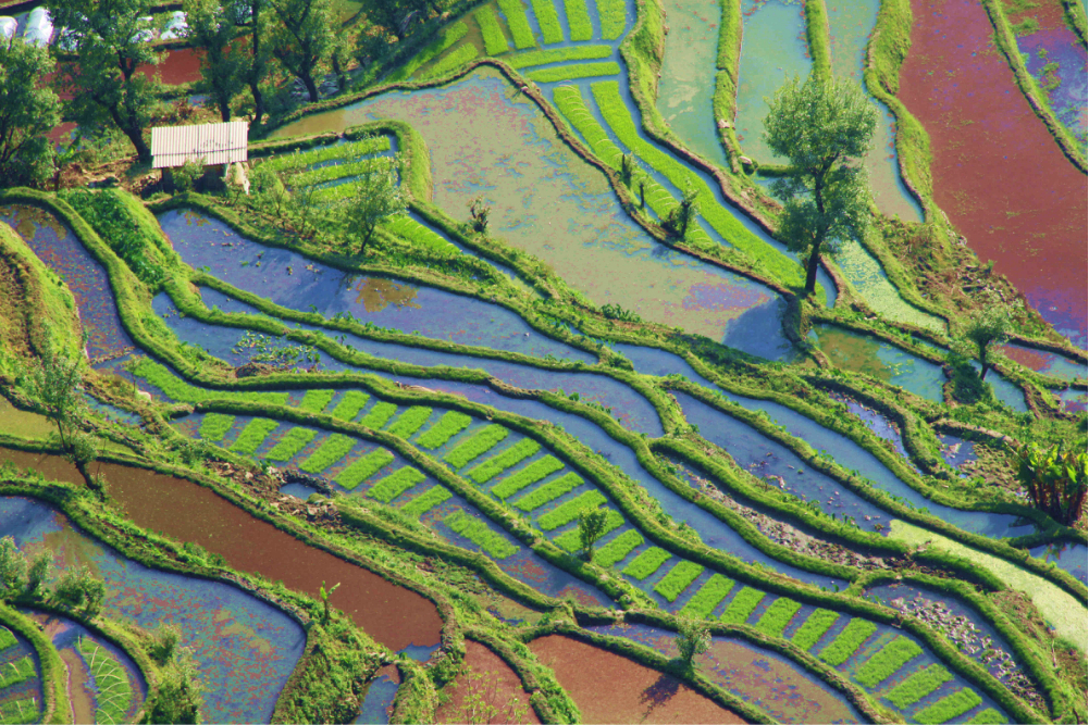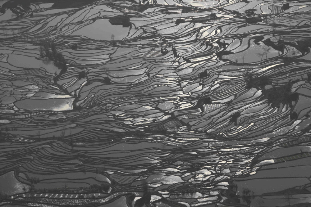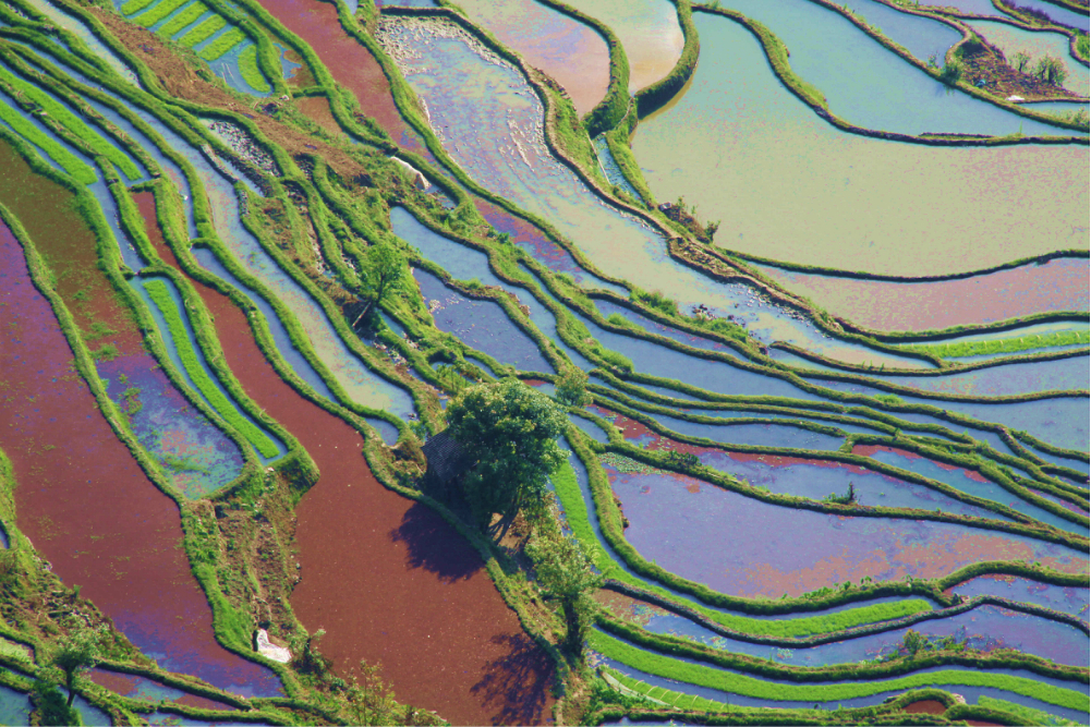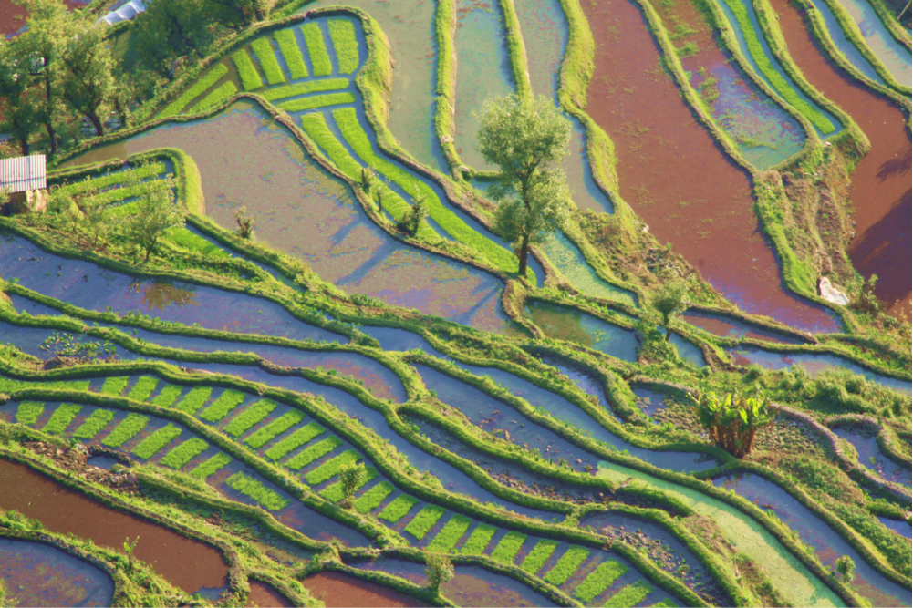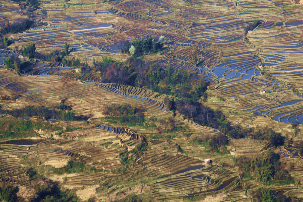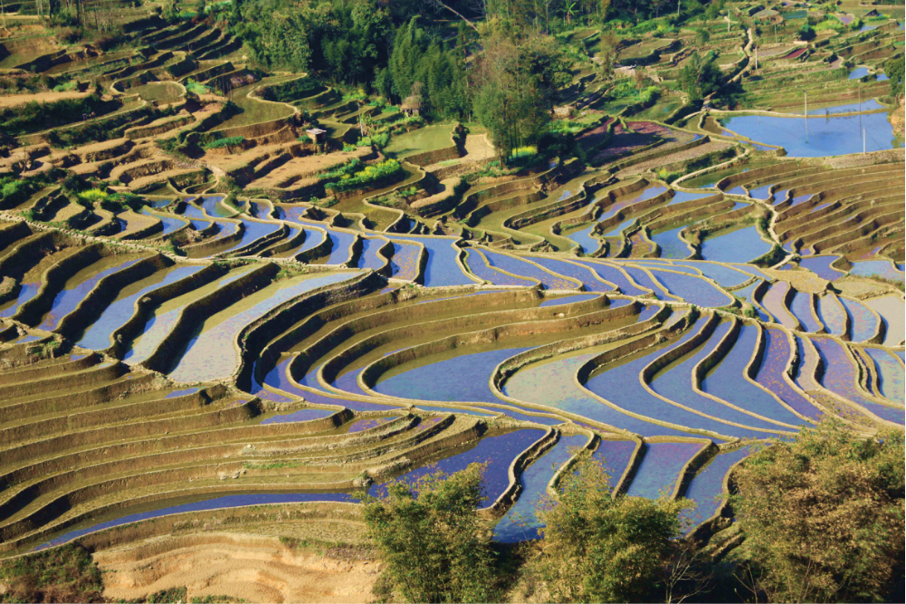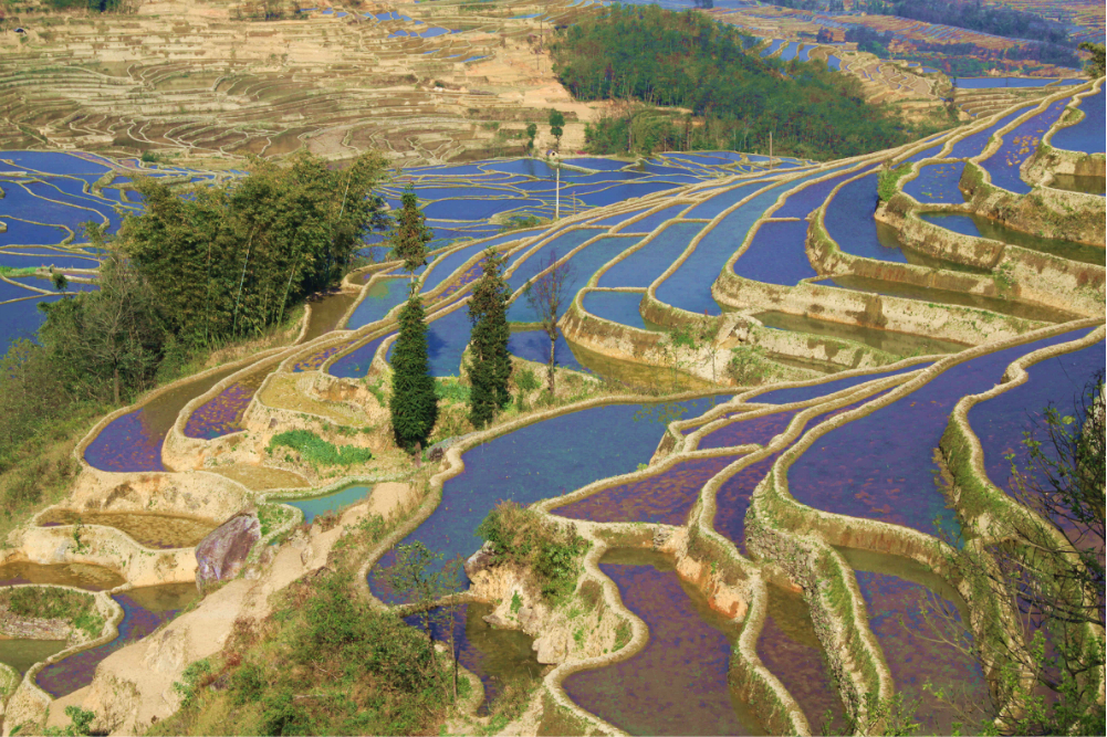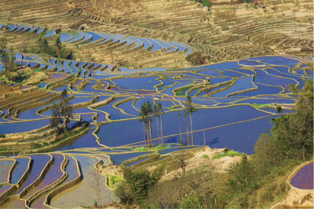 40分钟后,到坝达景区。沿不宽的山间小路进去一千米左右,层层叠叠的梯田就呈现在眼前。从山脚到山顶,足有上千级,从近处到天际,不下数万亩。哈尼族人民的惊世杰作,令人叹为天作。