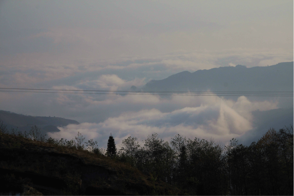 约8:00,离开多依树,向坝达进发。下面是途中拍到的云海。