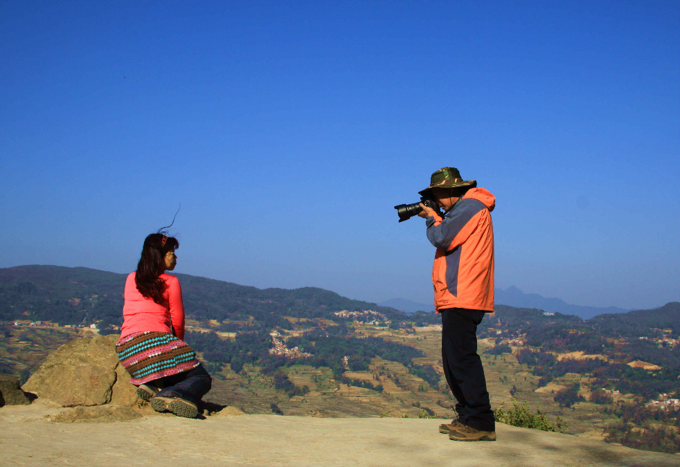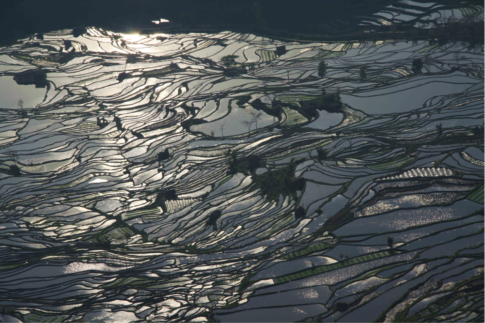 此时,骄阳当空,上下几层观景台上,架满长枪短炮,不时有人按动快门。而更多的人却躲藏在树荫里、阳伞下等待,等待着夕阳西下。 网上,都说老虎嘴的梯田看起来像一匹昂首奔腾的骏马,可惜,本人眼拙,无论怎样努力地看,就是看不出来。