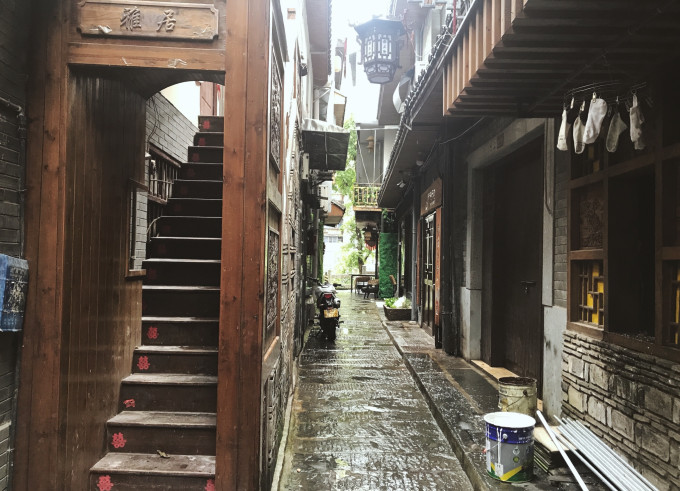 都正街,黛瓦青墙,闹市中难得一隅,这条巷子不如其他老街来的有名气,曾经在岁月的沉淀里变成了一条无人问津的破旧老街,可是,站在这里我才真正闻到了长沙老城的厚重味,加上当天夹杂着柔柔细雨,不撑伞都不会被打湿,忍不住想要哼唱一首《从前慢》,那种感观很是吸引来自北方的我。