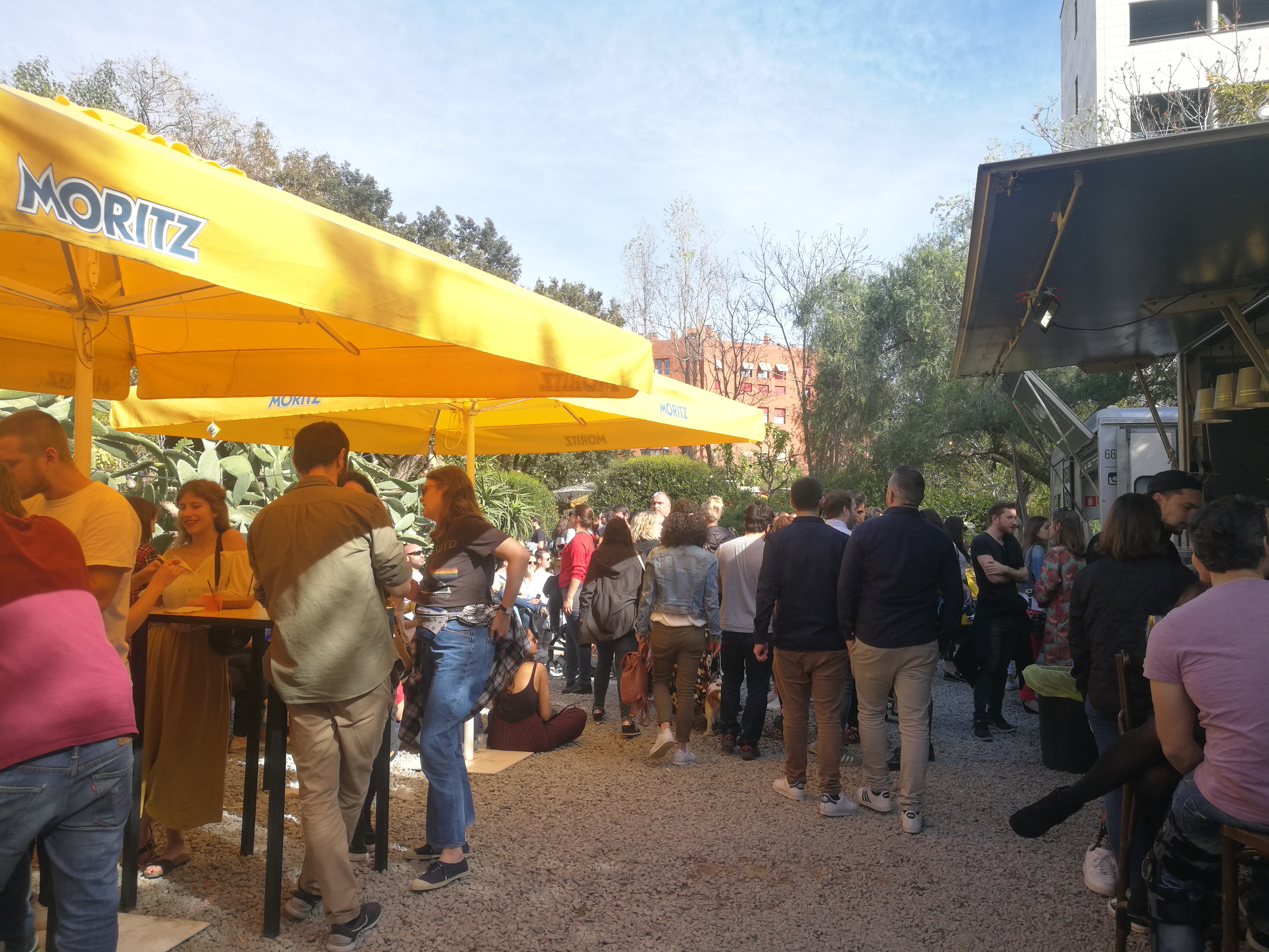 进入正题,往返机票买的乌航和俄航,俩人六千。4月15日凌晨两点半的飞机,当地时间中午十二点多落地,到酒店已经下午两点多了,酒店订的加泰罗尼亚广场附近的加泰罗尼亚酒店,是个连锁酒店,住的挺舒服,在龙达住的也是这家连锁酒店。这个酒店有个很神奇的地方是房间内有个手机,全城通wifi,旅行常用的app都有,还挺爽的。14日还有一个下午的时间可以到处逛逛。我俩商量了下去哪,想起某个攻略上看过小巴塞罗那海滩附近有个Palo Alto市集,有吃有喝有跳瘙市场还有演出,就决定去凑个热闹。到那一看,乱糟糟的,各种各样的摊位,美食、衣服、工艺品、首饰……演出要很晚才开始。在这里吃了快餐并不过瘾,为了吃大餐我俩就早早离开了。