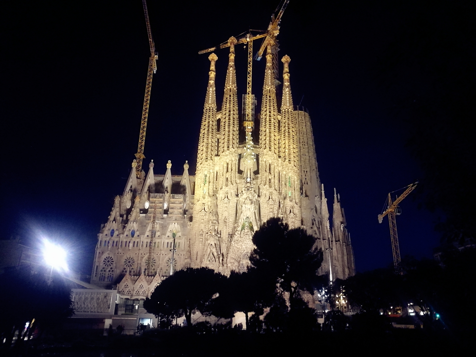 吃完饭发现圣家堂对面有个很小的小公园,有很多小孩儿在玩耍。西班牙人真好看啊,颜值和意大利人有一拼。在小公园拍圣家堂的全景简直完美,虽然那个时候天已经全黑了,夜晚的圣家堂也很美啊~~~