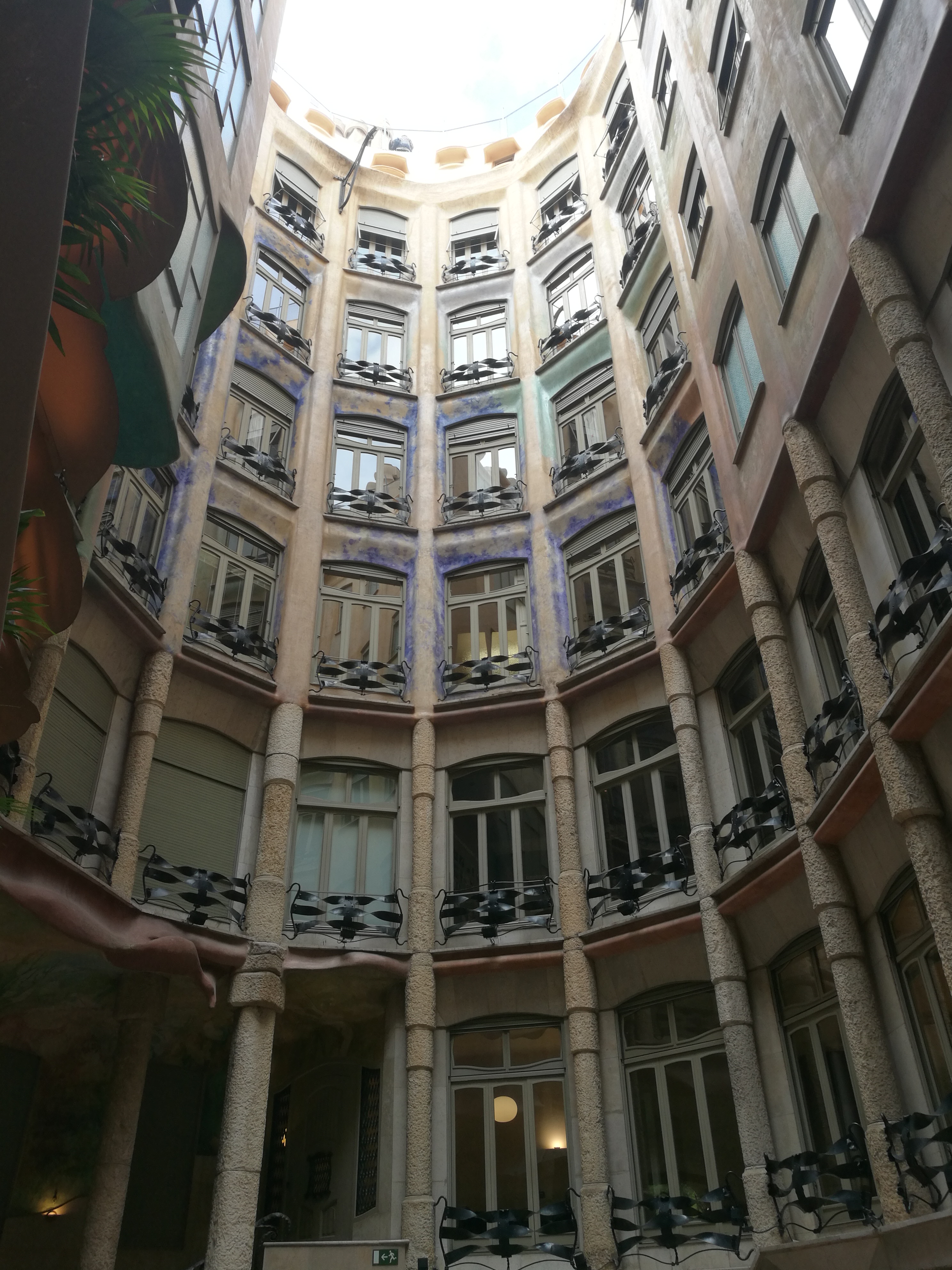 16号的行程,主题是高迪。圣家堂、巴特罗之家、米拉之家、古埃尔公园。可惜前一天订票的时候网上没有圣家堂上午的票,只有下午四点的票。只能改变行程,上午先去了能订上票的巴特罗之家和米拉之家,真的要网上提前买票,门口现买票的队伍排的很长。巴特罗之家侧重室内,米拉之家侧重屋顶。租了讲解器,讲了很多高迪的建筑理念。高迪同等注重房屋美观与实用性,印象深刻的是巴特罗之家神奇的门把手,小小的把手都暗含心机,完全按照人体工学设计,无论是谁,习惯左手还是右手开门,正握还是反握,都会发现把手与自己的手完全契合。
