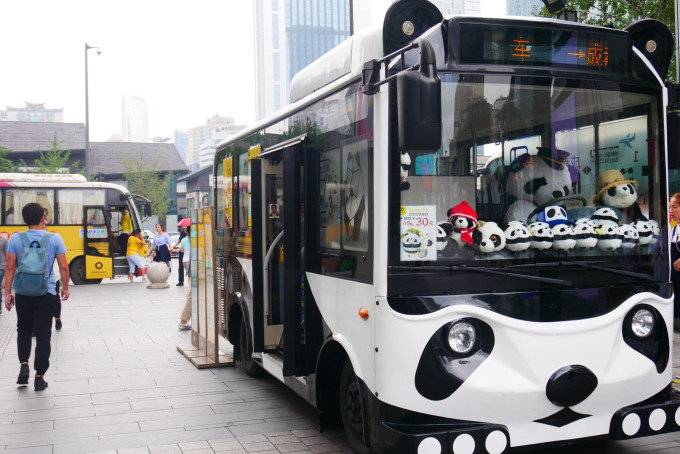 很Q的熊猫车,类似景区直通车。