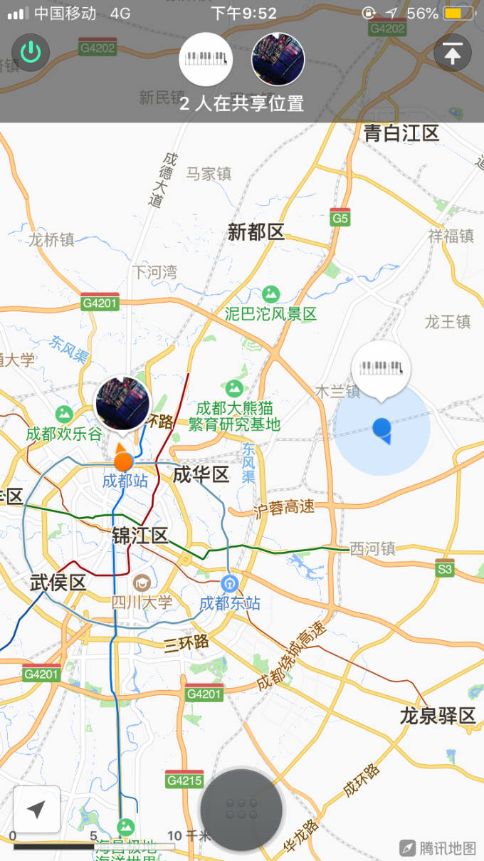 我和大露驾女士发起了毫无意义的位置共享。