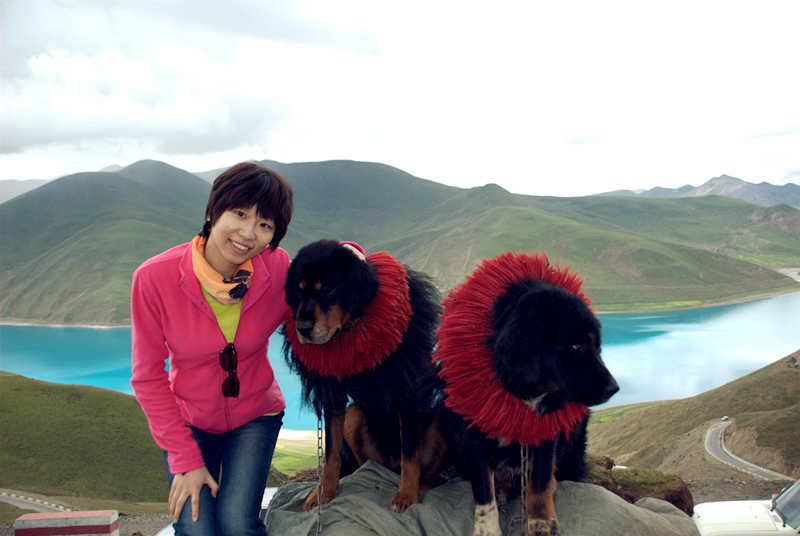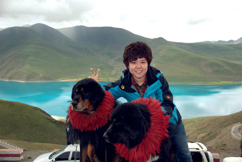 没见过这么老实的藏獒,怎么摸都没事。和它们照相是要付钱的,5元一只随便照。记住照之前一定要和老板谈好价钱。