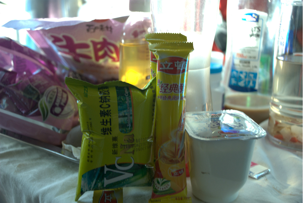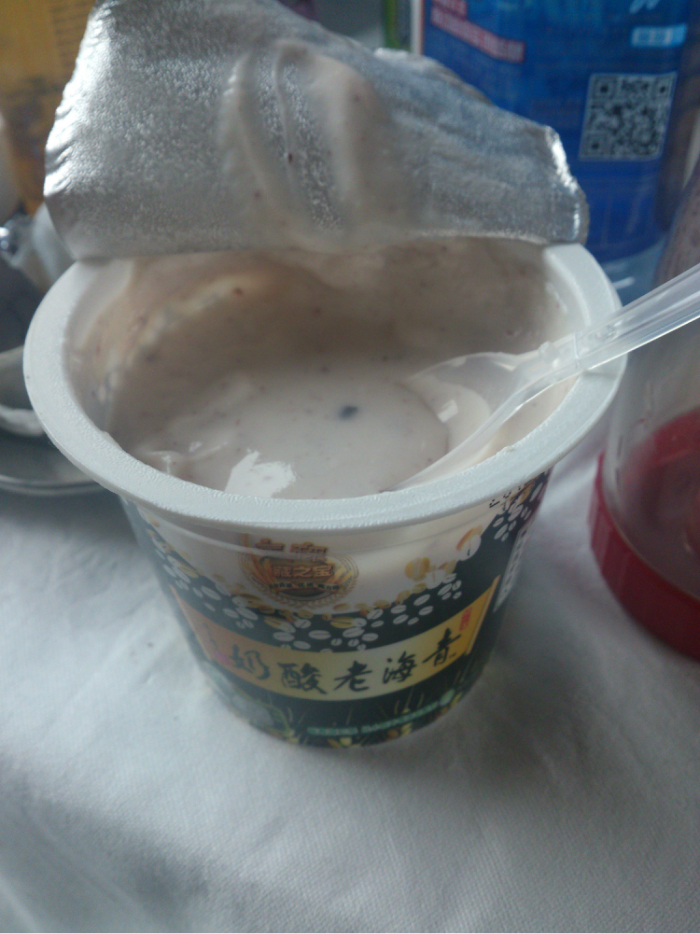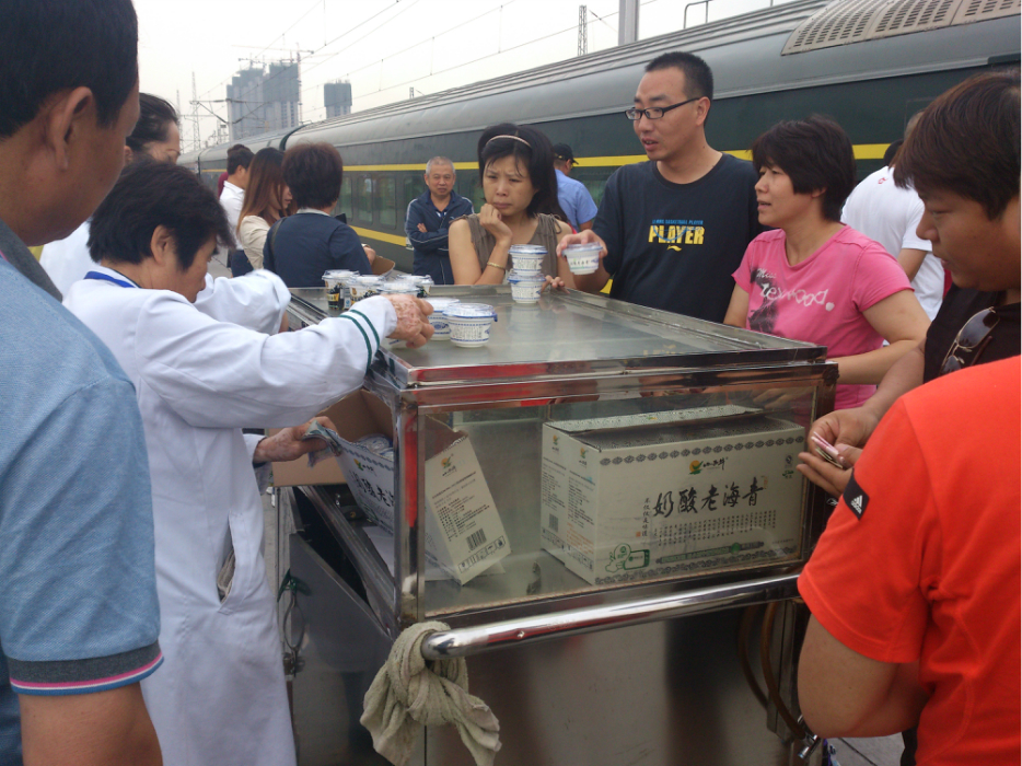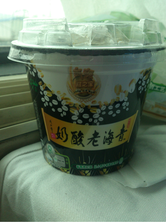 在西宁 站停泊时间较长,于是下车来放放风。看到车站工作人员正在兜售青海 老酸奶。