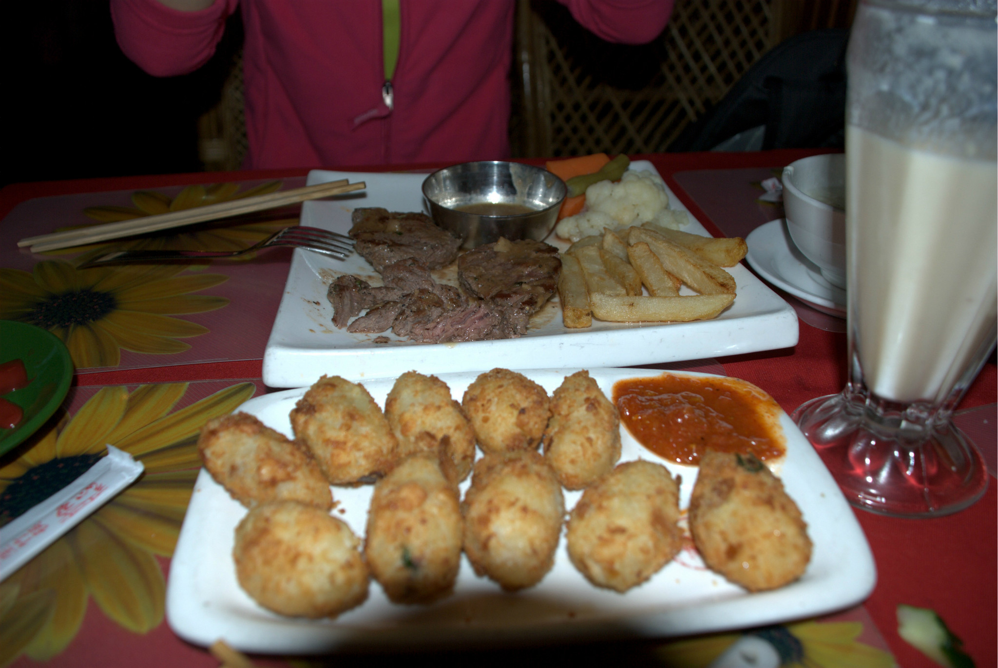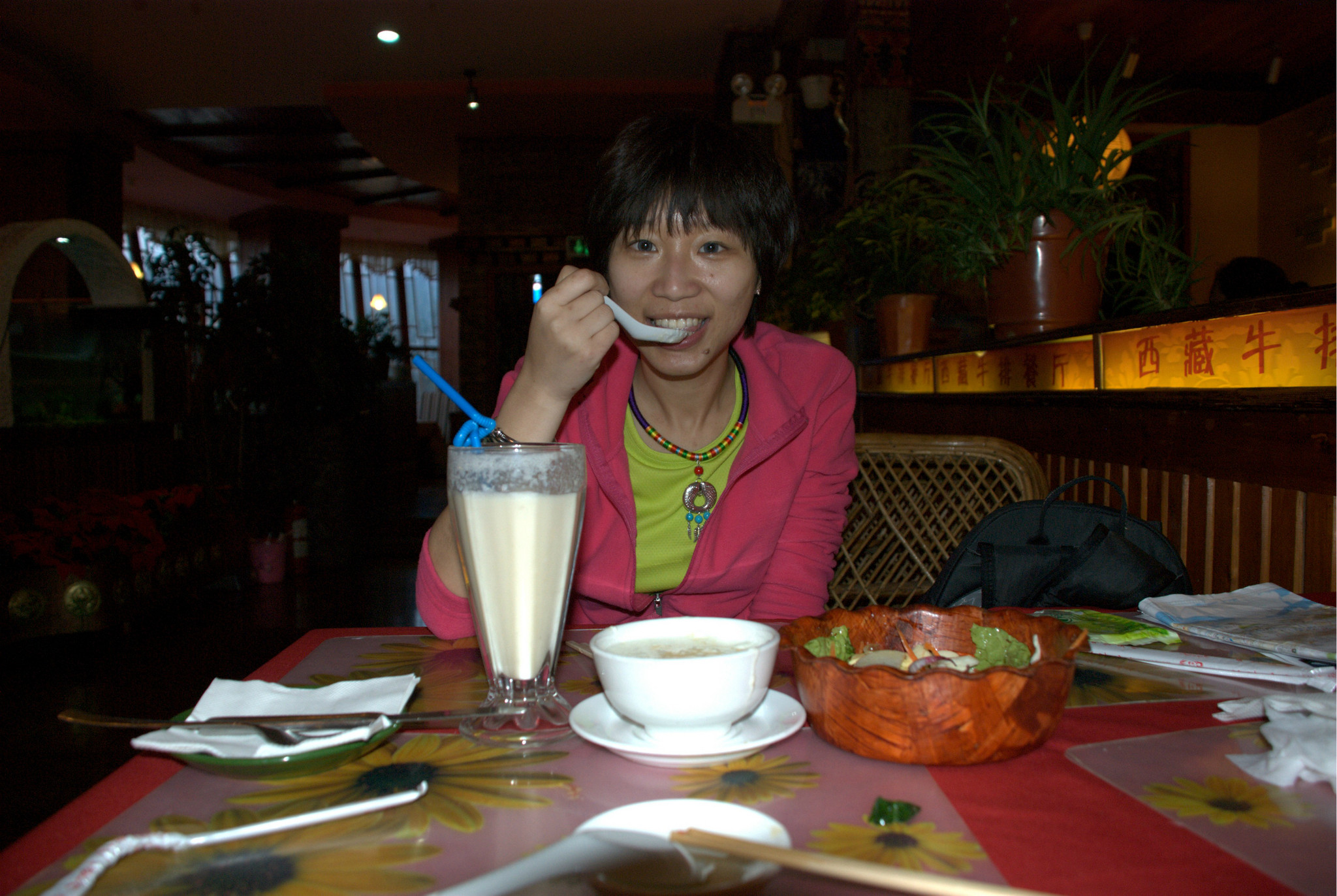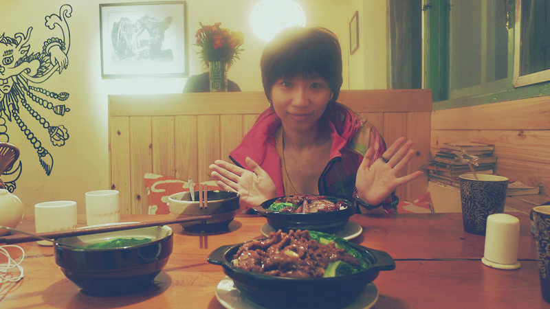 在宾馆歇了一会,觉得有所好转,就出去找吃的了。在酒店不远处就找到了一家,叫阿妈净餐。