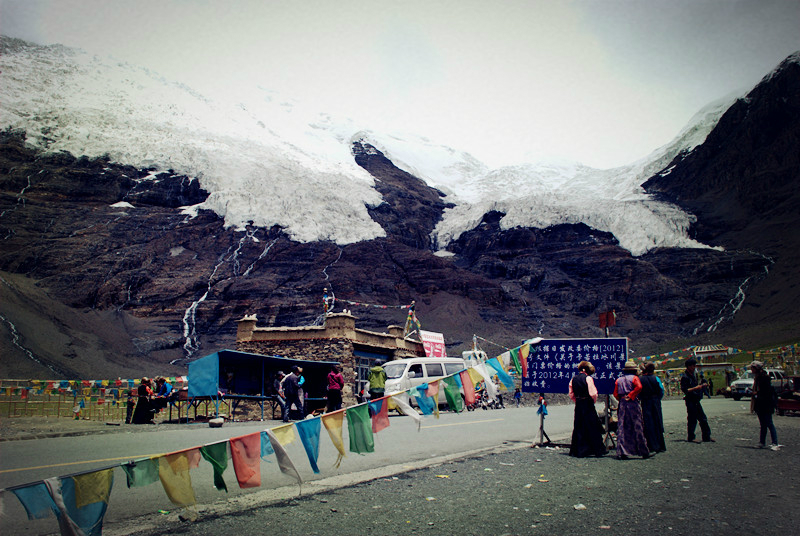 卡若拉冰川因拍摄电影《红河 谷》《云水谣》而闻名,冰川中间秃的那一块,是剧组为拍雪崩效果而用炸药炸掉的,那一块山地至今未积雪。