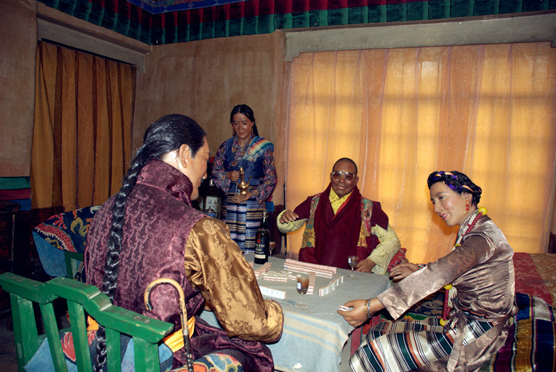 贵族们在搓麻,麻将是用牦牛骨做的。