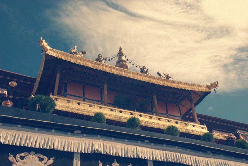 此刻殿里的喇嘛正在辩经,导游说不参观等于白去扎什伦布寺,可是几天来的旅途奔波和高反已经累得精疲力尽,那十几节台阶那时确比登天还难。