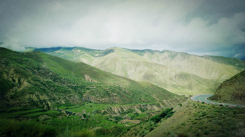 从拉萨 一路向西爬高,这一路上,和林芝 的景色截然不同,不再是松林密布、烟雨蒙蒙,展在眼帘是另一种壮美。
