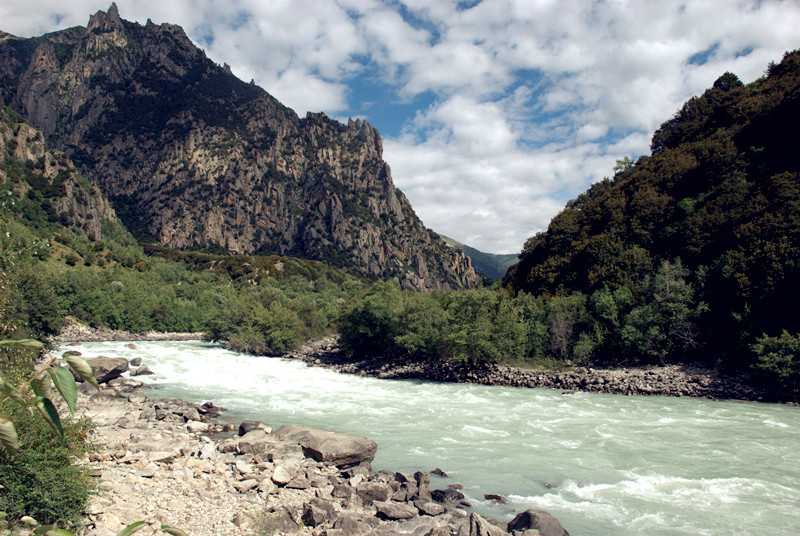 江水变得湍急,如果从这漂下去,一直会漂向印度 。这里距印度 只有70公里了。