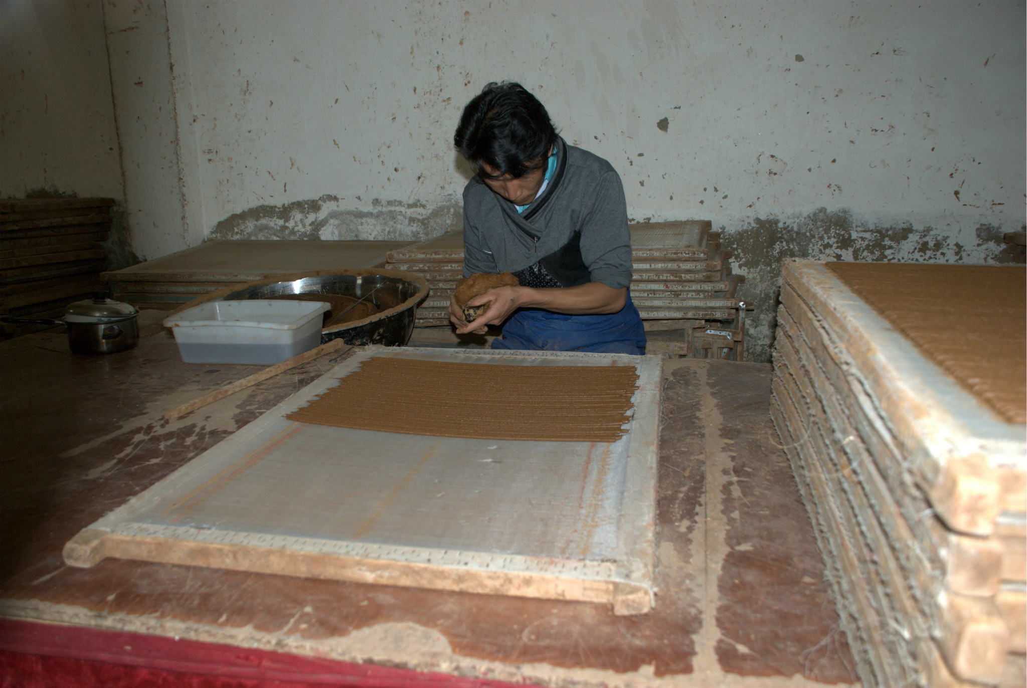 工人正在制作藏香。藏香是由多种西藏 名贵中草药,按比例混合配制而成,极具药用价值。