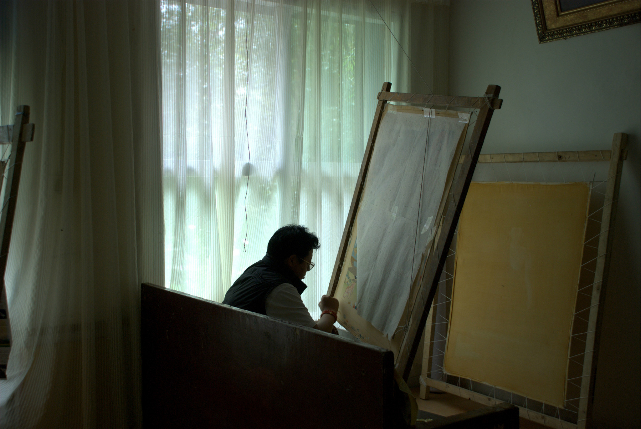 画师正在绘制唐卡。