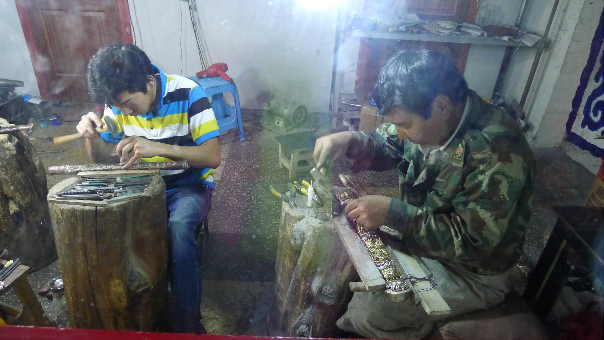 又来到了个藏刀店,工人们正在制作藏刀