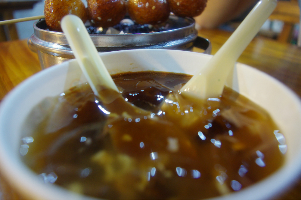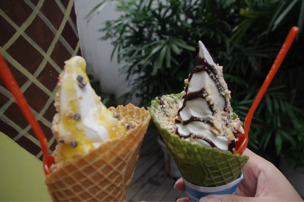 才九点不到的样子,街上的店铺都已经关门了,因为刚下过雨的缘故,吃饱喝足后走在静谧的石板路上别提多么惬意,在回住处前,终于发现有家小店铺还在做生意,作为标准的吃货,怎么能放过呢?嘿嘿,这次直接上图不解释!