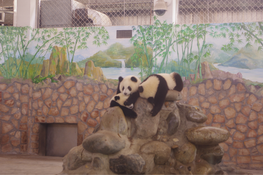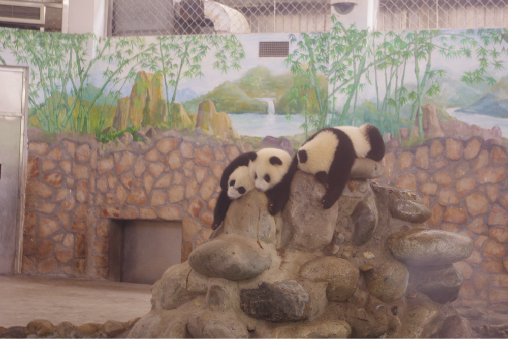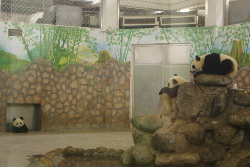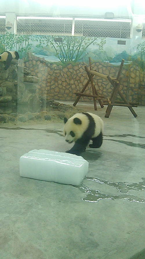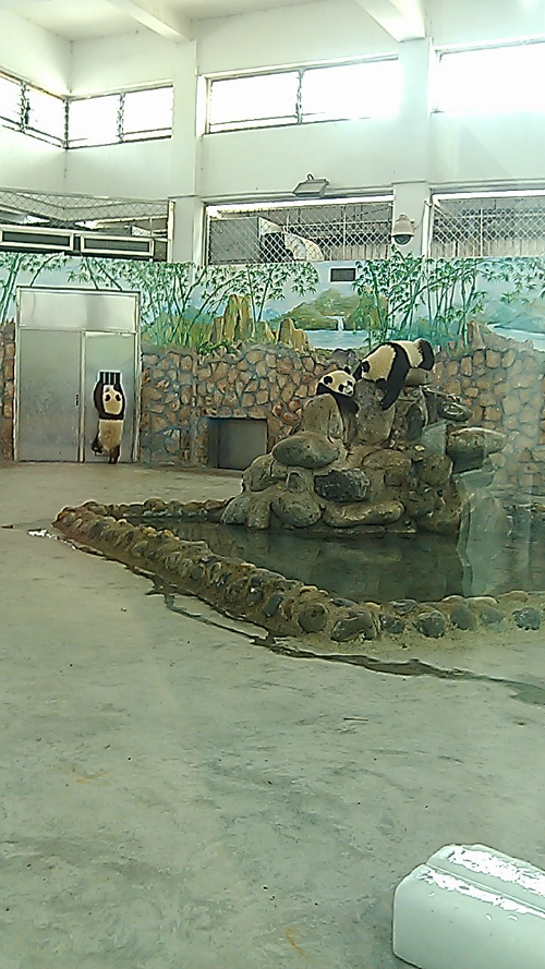 露天的大熊猫很不给力,当天没见到多少只,下面见到的都是养在别墅里的熊猫,算是近距离,如果将玻璃排除的话。最大的遗憾就是没有见到传说中的熊猫宝宝,本来八月正是熊猫的产仔季,但一只都没有看见,产房里也没得,估计是被隔离了,因为通过观看熊猫的宣传电影,熊猫宝宝生下来非常脆弱,熊猫妈妈大多不会抚育自己的宝宝,现在都是靠人工。