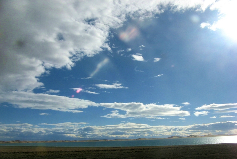 在西藏,风景在路上,有时是坐大巴,有时是坐小车,总之路上的风景美不胜收,只是拍照时因在行驶的路上,有车窗玻璃的反光,及污洉,更有运动动感的虚景,但仍然是美丽的风景。6月的去拉萨的火车上