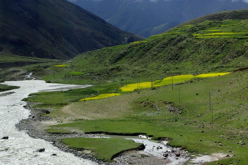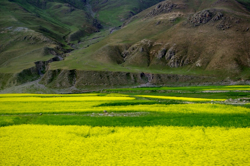 在西藏,风景在路上,7月坐上离开拉萨的高原火车,路上的风景美不胜收,高原上已经有了绿意,于是有了春天的花。草原的绿……,只是拍照时因在行驶的路上,有车窗玻璃的反光,及污洉,更有运动动感的虚景,但仍然能记录下这美丽的风景。
