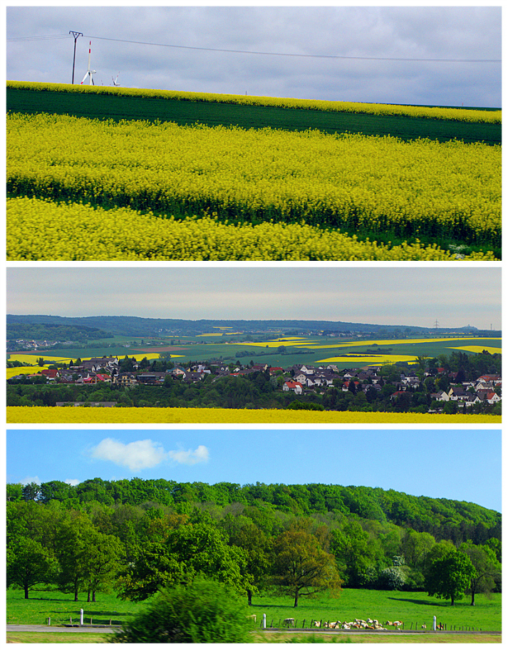 一路上绿油油草原和无际无边的金黄色油菜花,就像给大地铺上一层厚厚的地毯,成群的牛羊闲庭漫步在大自然中。
