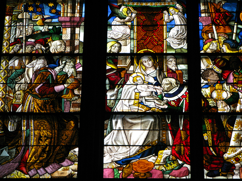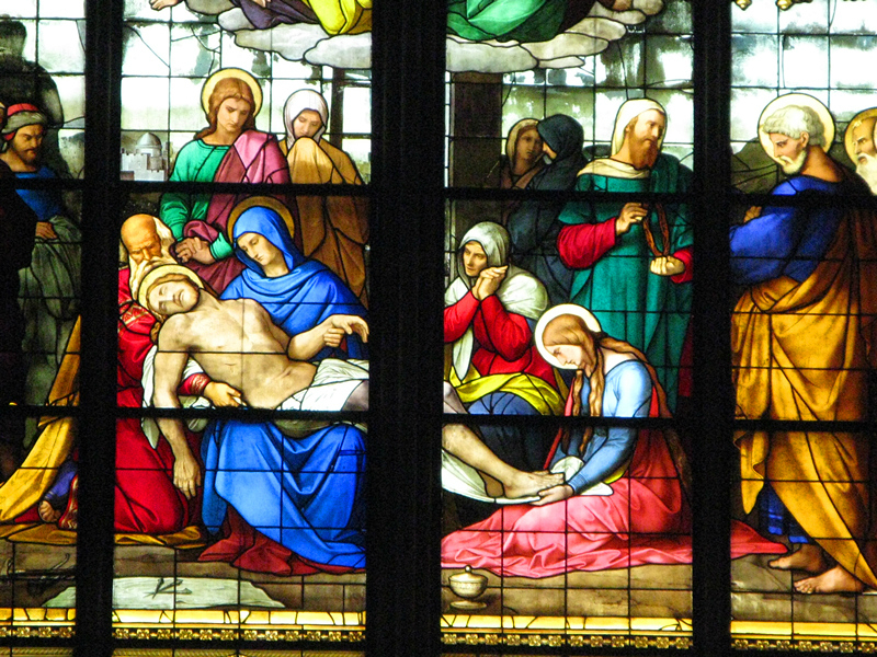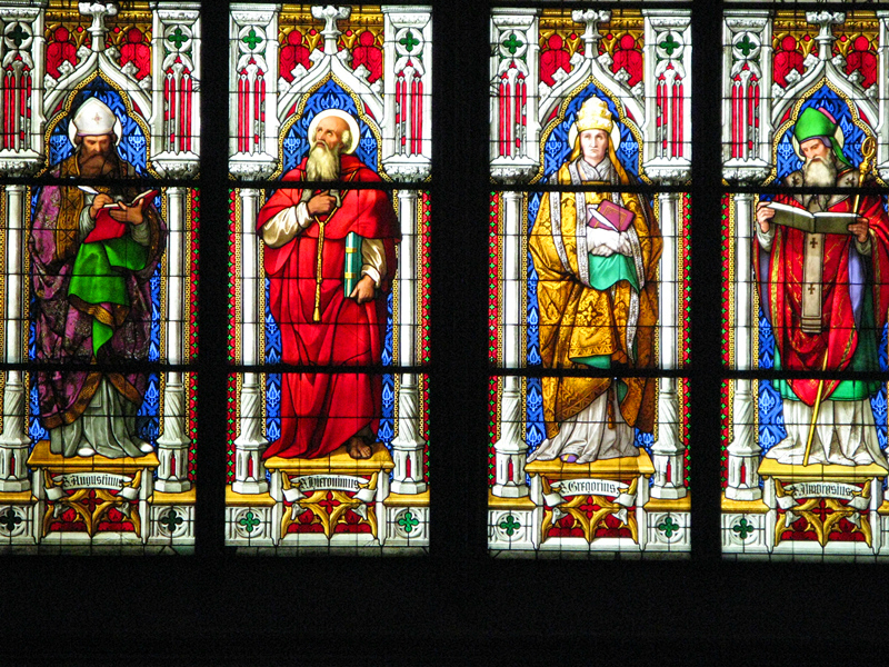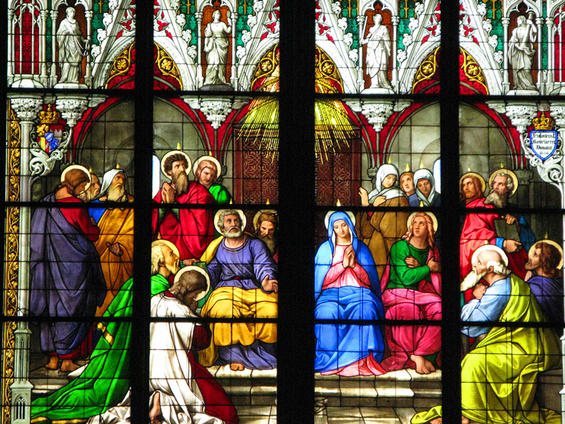 大教堂四壁上方的玻璃窗用彩色玻璃嵌出色彩绚丽的《圣经》故事。