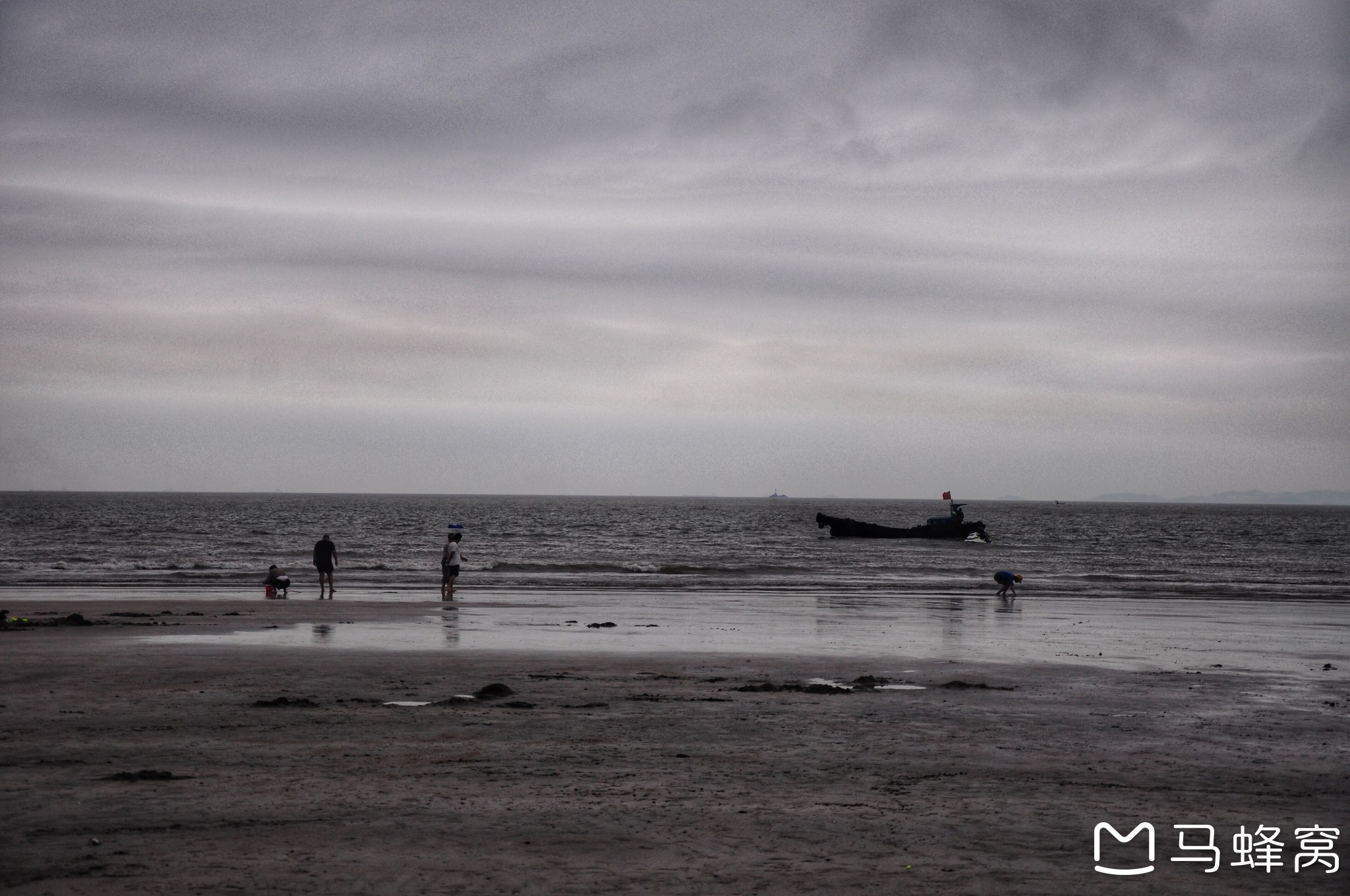 天气阴沉,温度不高,海风略硬,并不适合下水游玩。