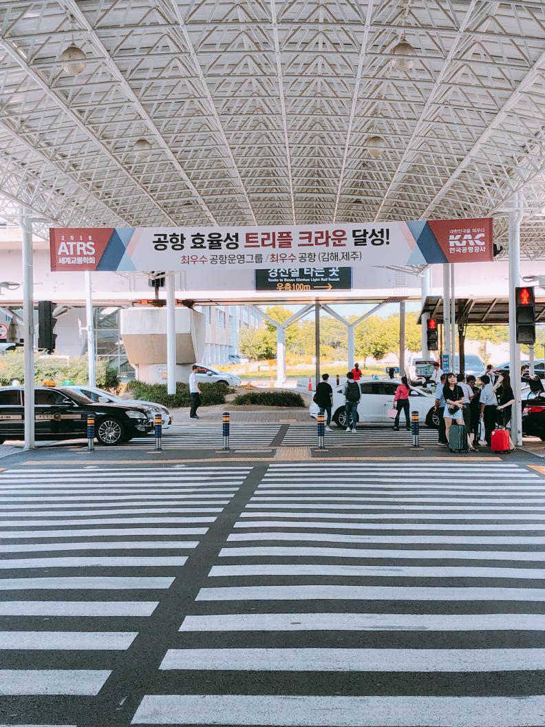 出机场后,过马路右转100米,可以乘坐釜山金海轻电铁。