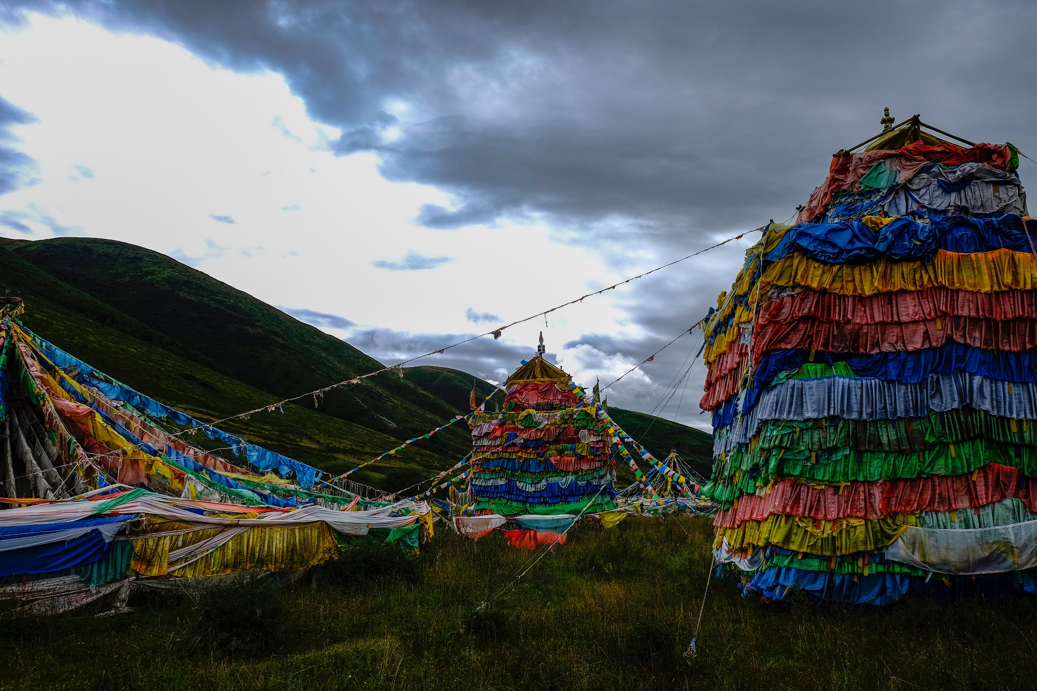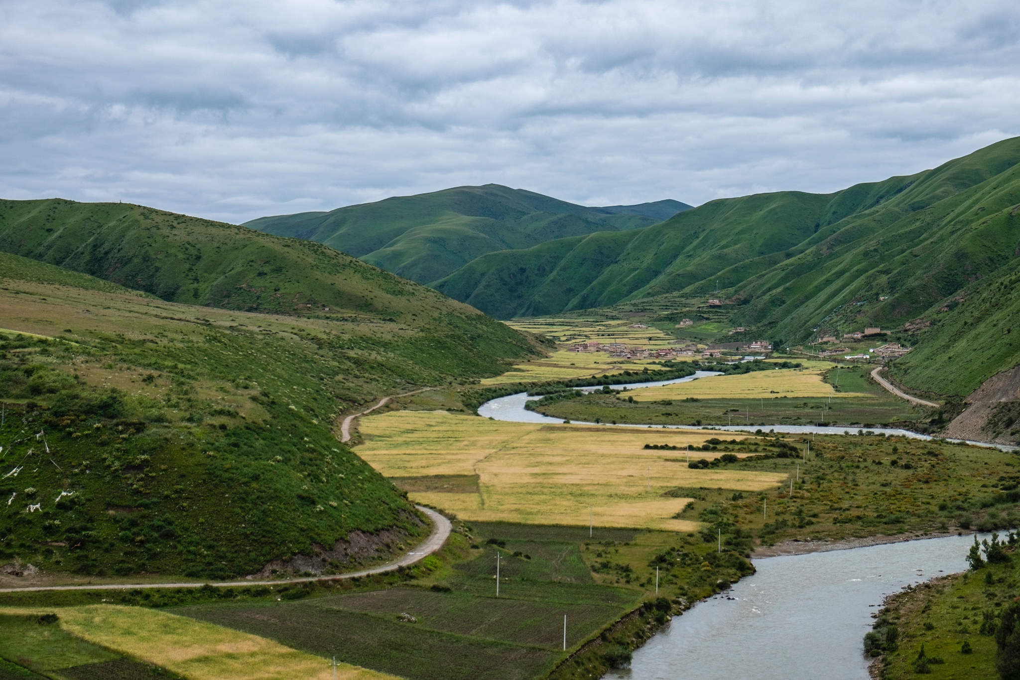 从阿坝县出去不远,站在一个山口上,就看到了这些景色,虽然因为雨季天气很不好,也不错。