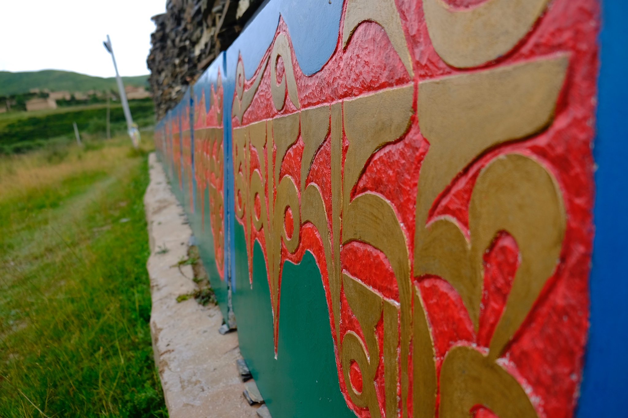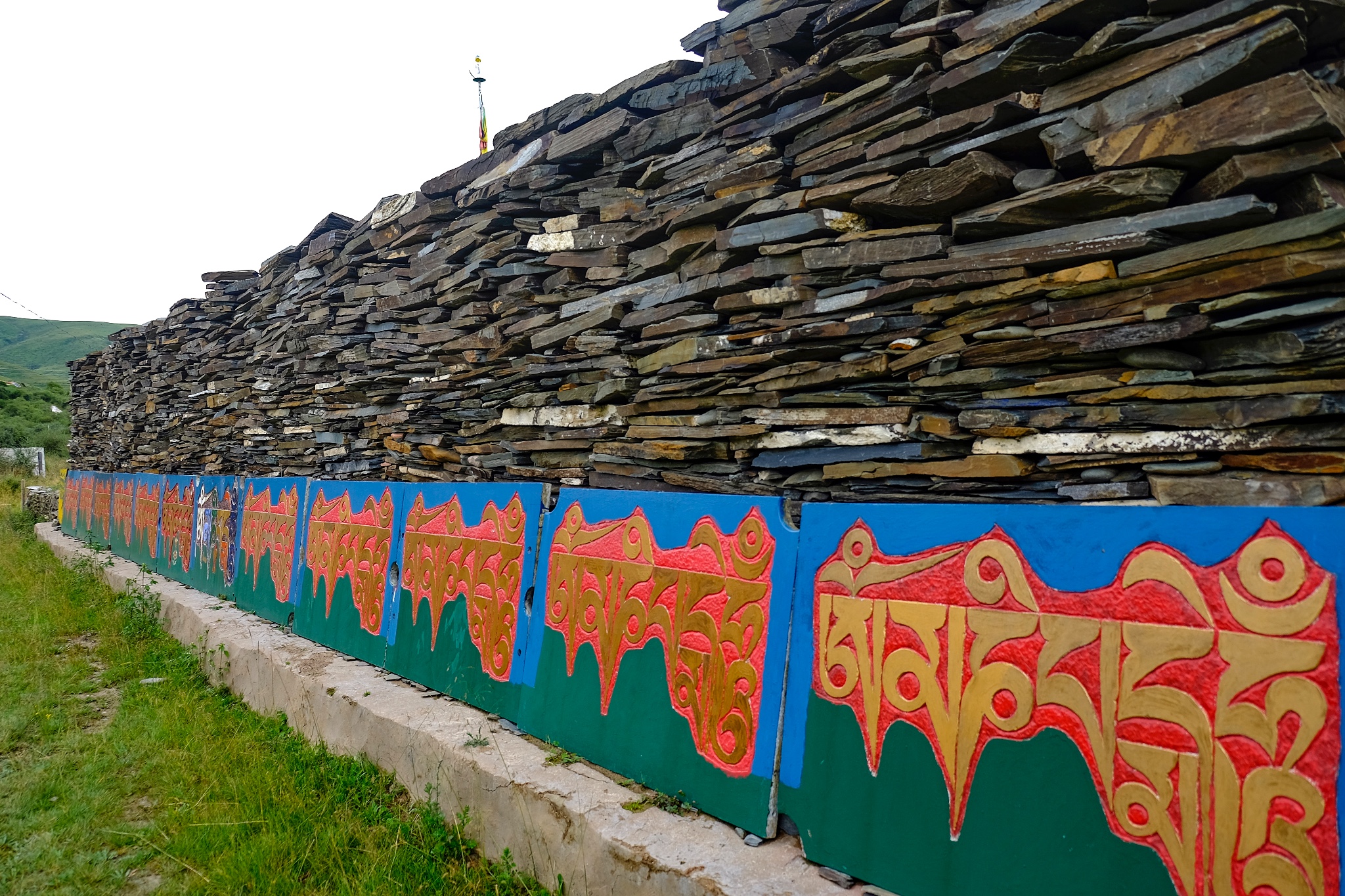 玛尼石堆成的石经墙,长度不长,数量也不多,但是也足够震撼了。