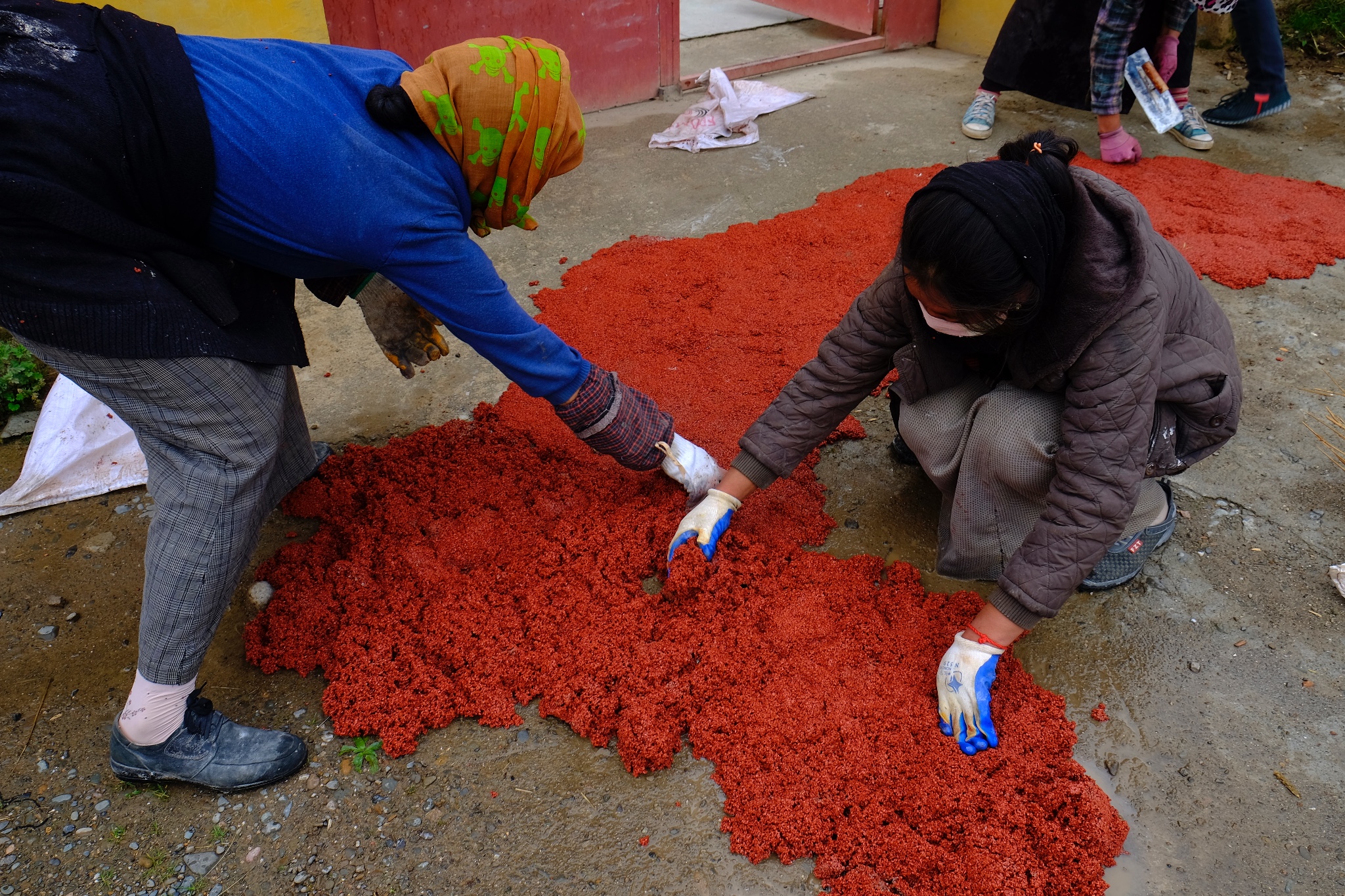 到了阿坝县,郎依寺正在准备对地面做铺装。这些混合了红色矿物质的黏土在经过捶打以后,又硬又可沥水。