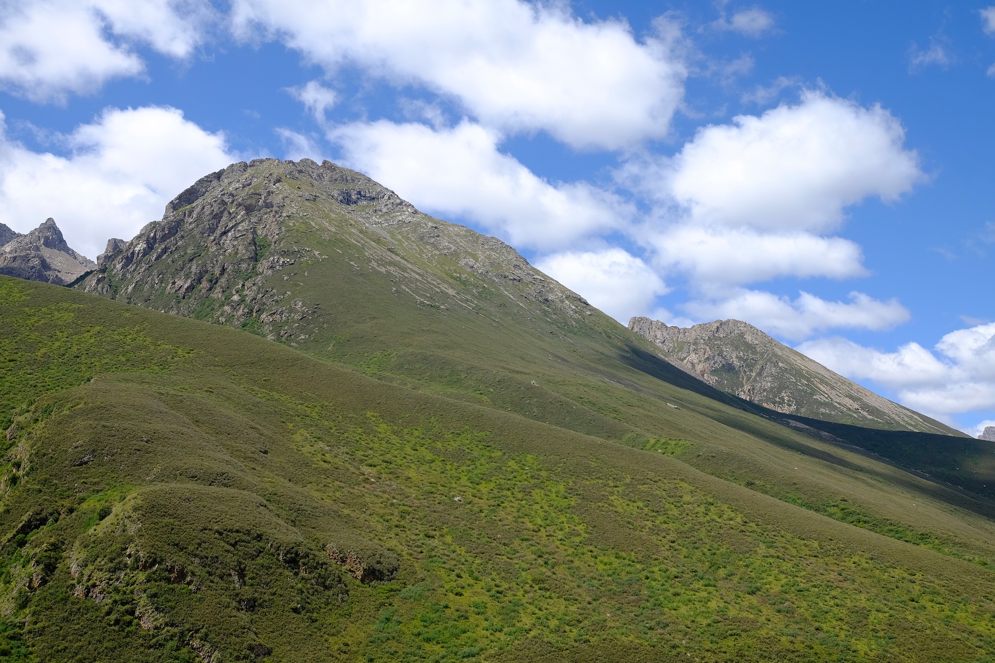 上午11点左右,到了车开不动的地方,问当地的藏族大姐,离山上的第一个海子有多远,她非常肯定的告诉我,就2公里。于是我背着相机走了出去。只是,只是,从那一刻开始,陷入了万劫不复,从上午11点到下午4点,手表显示我在焦烈的阳光下,没有任何防晒措施的前提下,硬生生的走了24公里!!!!!(虽然现在路修好了,不用走了)