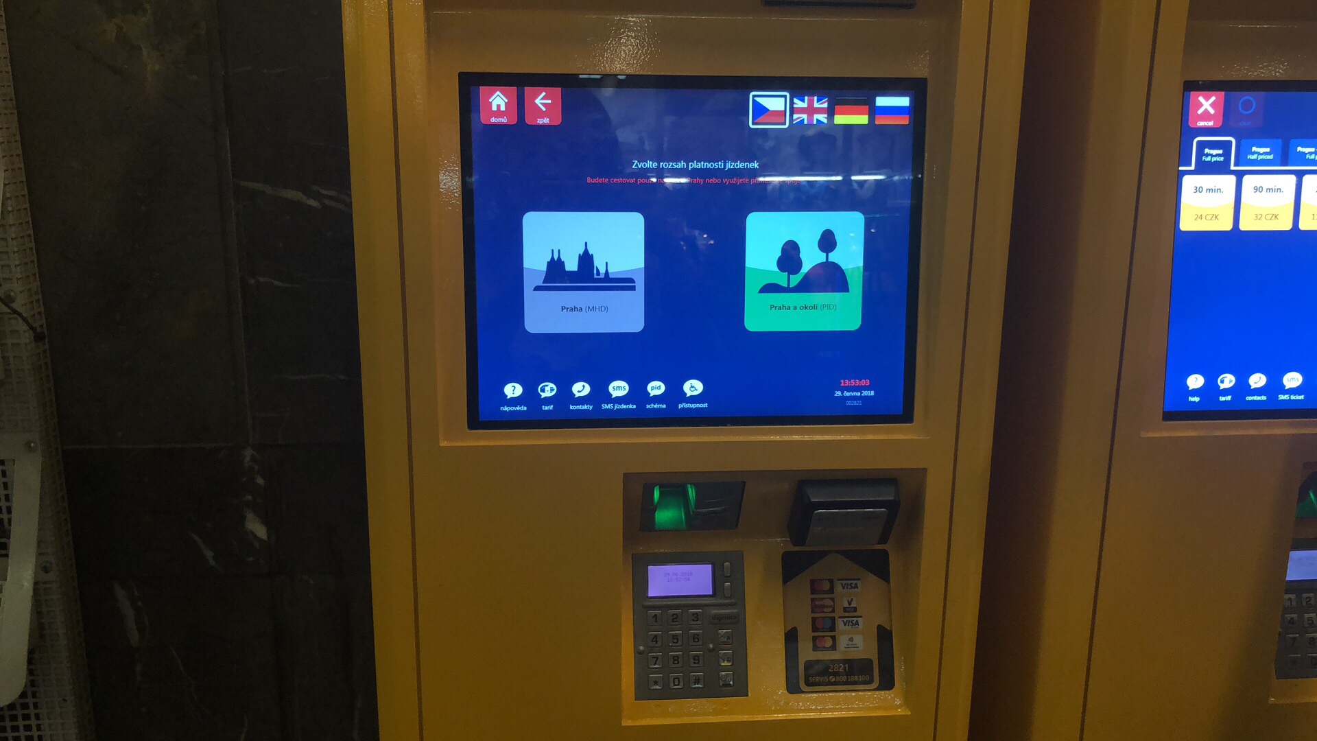 第一次在布拉格坐地铁,布拉格的地铁真的没人查票,全在自觉。点第一张图的左边出来第二张图点第一个选24kz是半小时,32kz是一个半小时。因为我觉得半个小时比一个半小时的好用。因为他是在时间内可以无限坐,因为我觉得到景点都在一起,逛完肯定超一个半小时,然后进去的时候放进机器里面打印然后就没事了,出来也不必刷票,公交我在布拉格没做过,据说这个票是公交地铁通用。之前听说过会有查票的,如果没有票会被罚钱,大概我们都是在非工作时间坐地铁所以并没有遇到查票的。