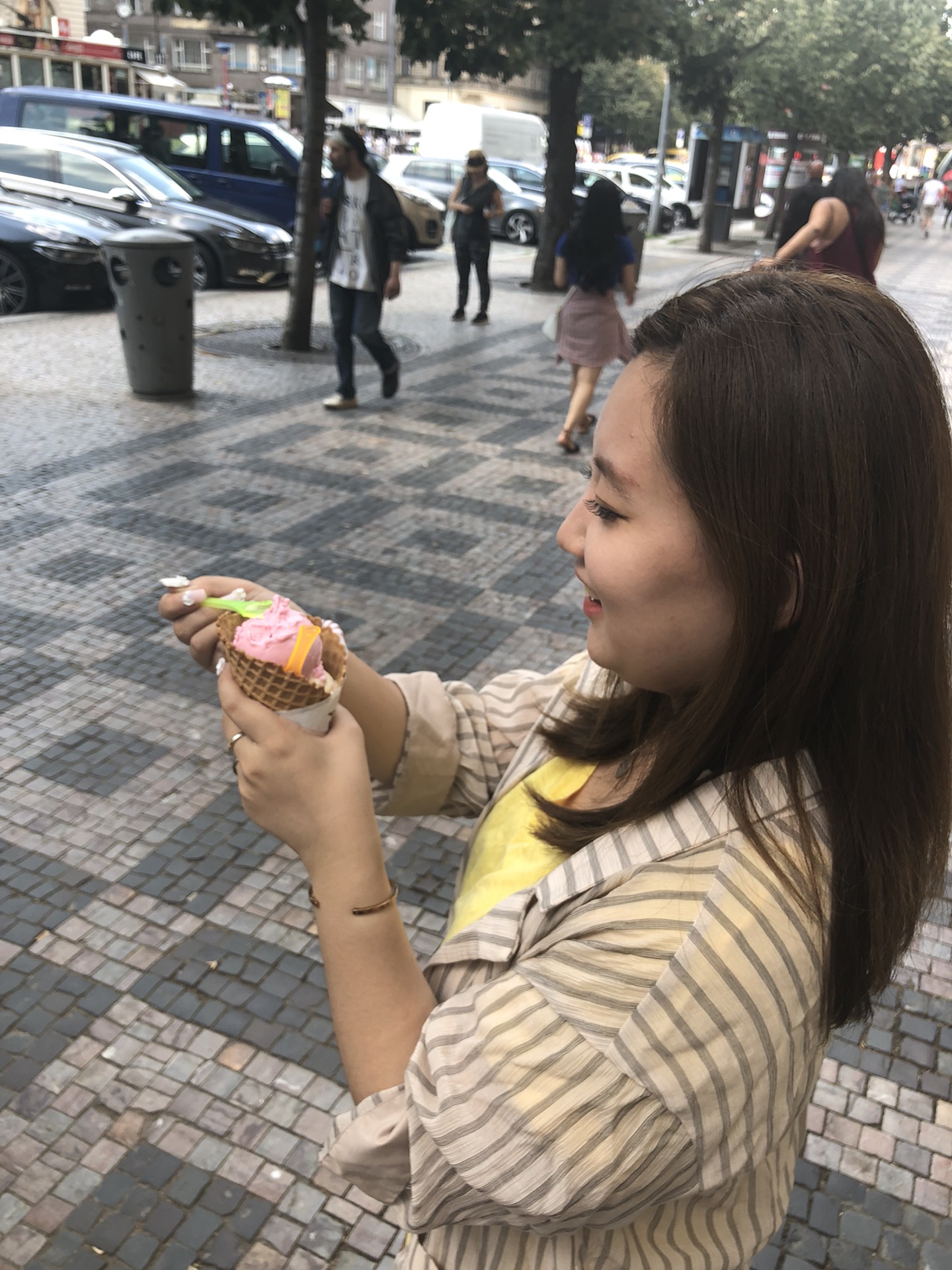 从莫斯科到布拉格2个多小时就到,早餐就是一般早餐。下了飞机后先出关,等了大概15分钟吧然后就是盖章出去,换好买的电话卡然后拿行李,然后取现,取现一定要渤海银行,每个月前三笔取现没有手续费,按实时汇率。然后准备去information拿点旅游资料什么的,结果除了地铁图好像什么都没有,然后准备打uber去工作室讨论拍照的细节。境外的uber真的很好用,地址都是非常准确的,这对于不会说外语的我们来说真的太好了。用当地电话卡注册一个uber,然后给钱方式可以选择信用卡或者现金,我一般都会选择现金。布拉格打车基本都是50人民币起步,我从机场打去布拉格7区,机场显示地址为park 1,我一直在找这个地方,没想到就一个停车场。我一直以为有2个或以上要不为什么叫park1,停车场找了10分钟,然后打uber,欧洲都是石子路不想费箱子打车也就100多,如果要自己去的话就要大巴倒地铁,时间也浪费了,而且还累,也贵不了多少所以选择打uber。到了工作室选好衣服,工作人员帮我们把衣服运到酒店还给推荐我们布拉格当地菜。然后在酒店收拾下就出发去玩了。