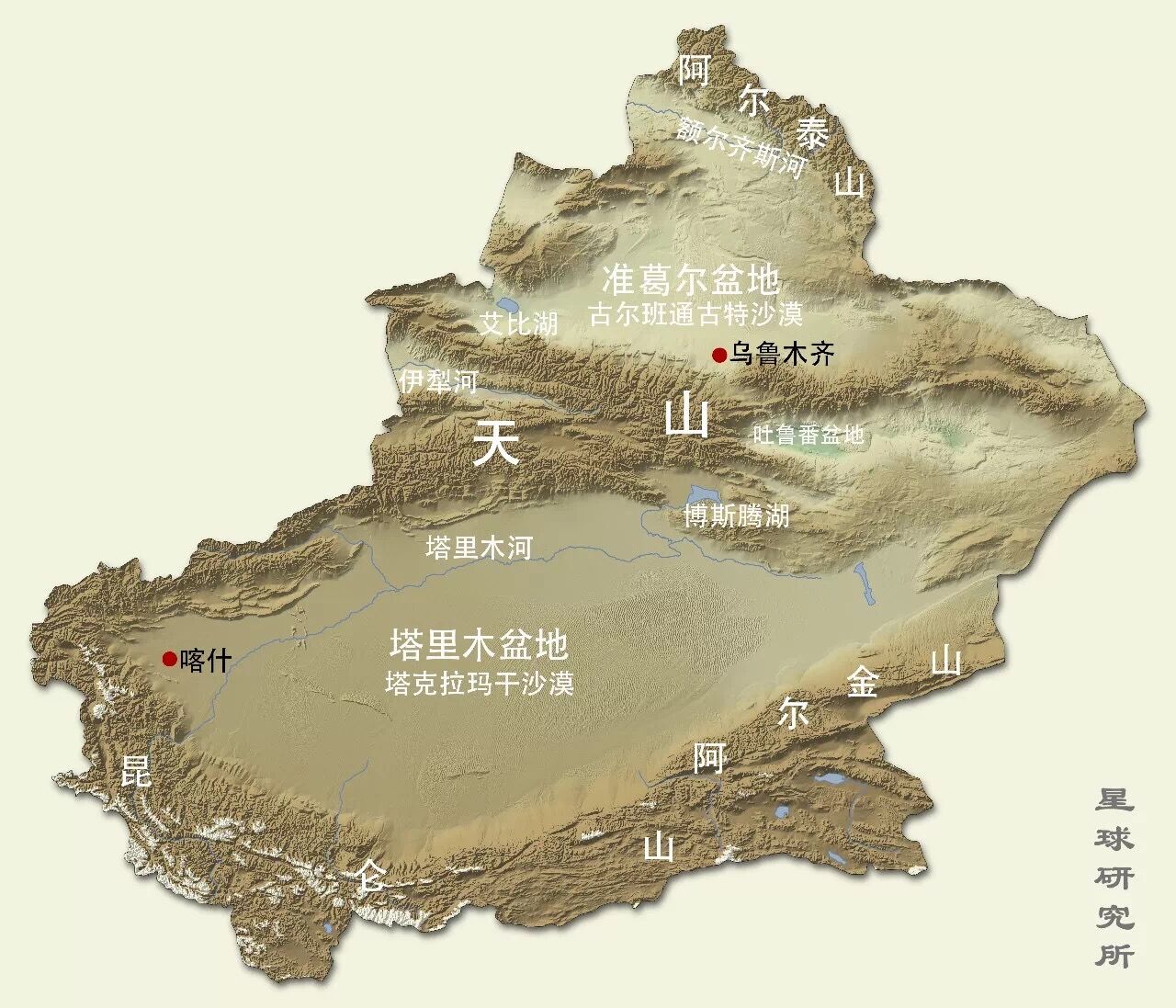 从地理书上,我们早就熟悉了新疆的“三山夹两盆”。从北至南,绵延的阿尔泰山、天山和昆仑山,为新疆166万平方公里的土地搭起气魄摄人的骨架。其中天山无疑是最重要的山脉,在疆内横亘1700公里,自东部的哈密地区起,向西一直延伸到哈萨克斯坦和吉尔吉斯斯坦,刚好将新疆分为南、北两半。