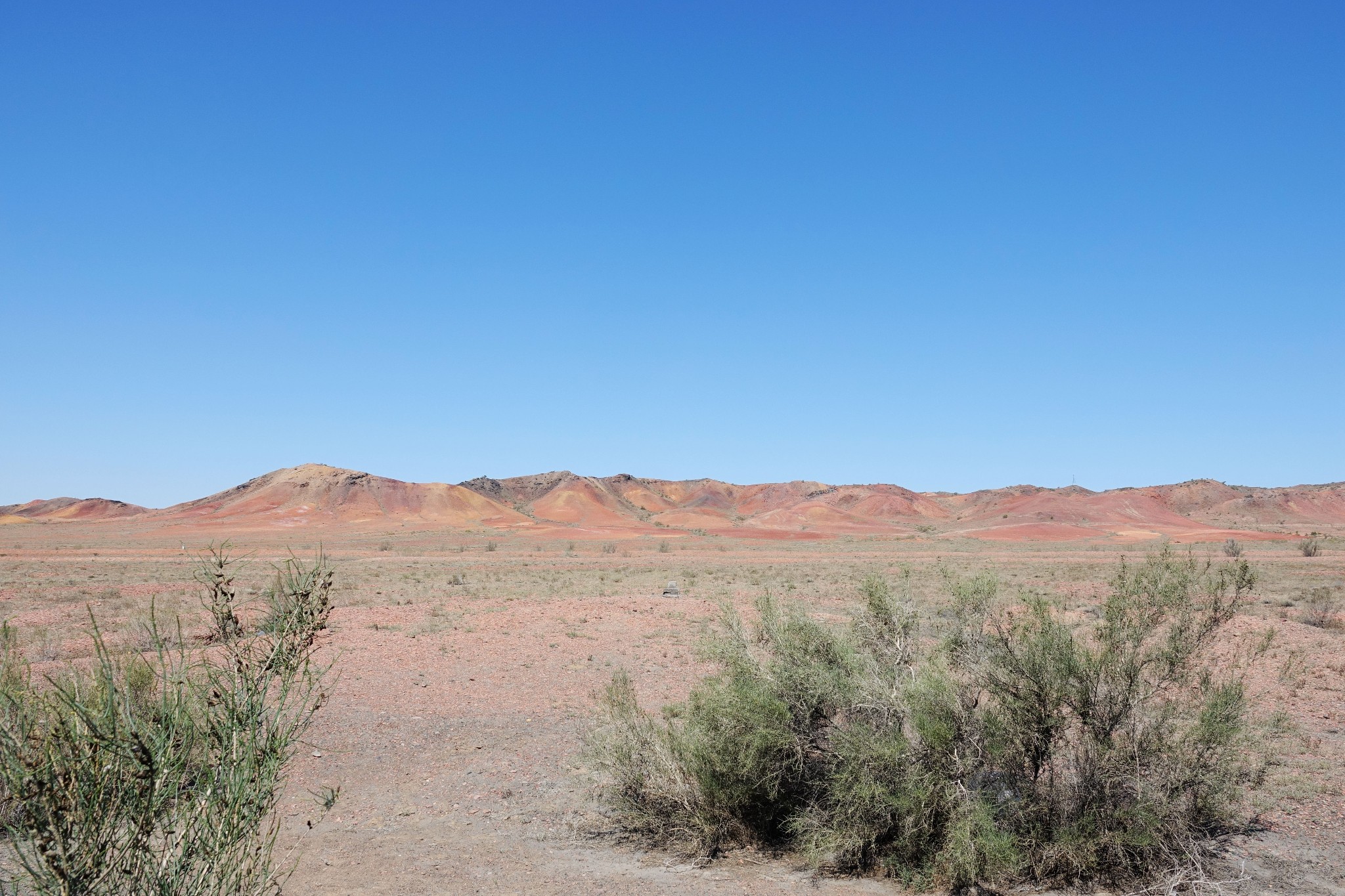 途中经过火烧山,远看红红的。近处的沙棘,生命力极强。