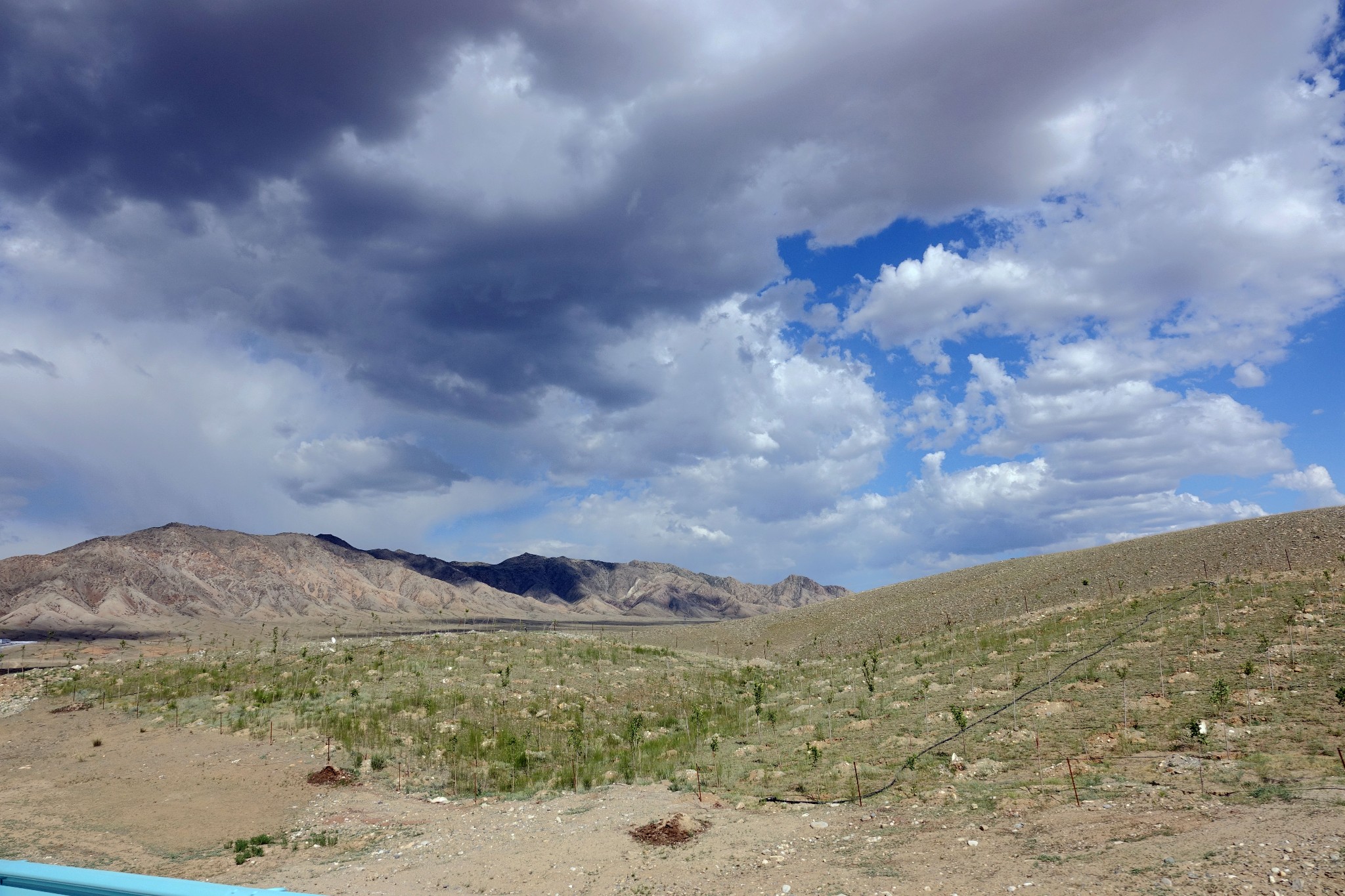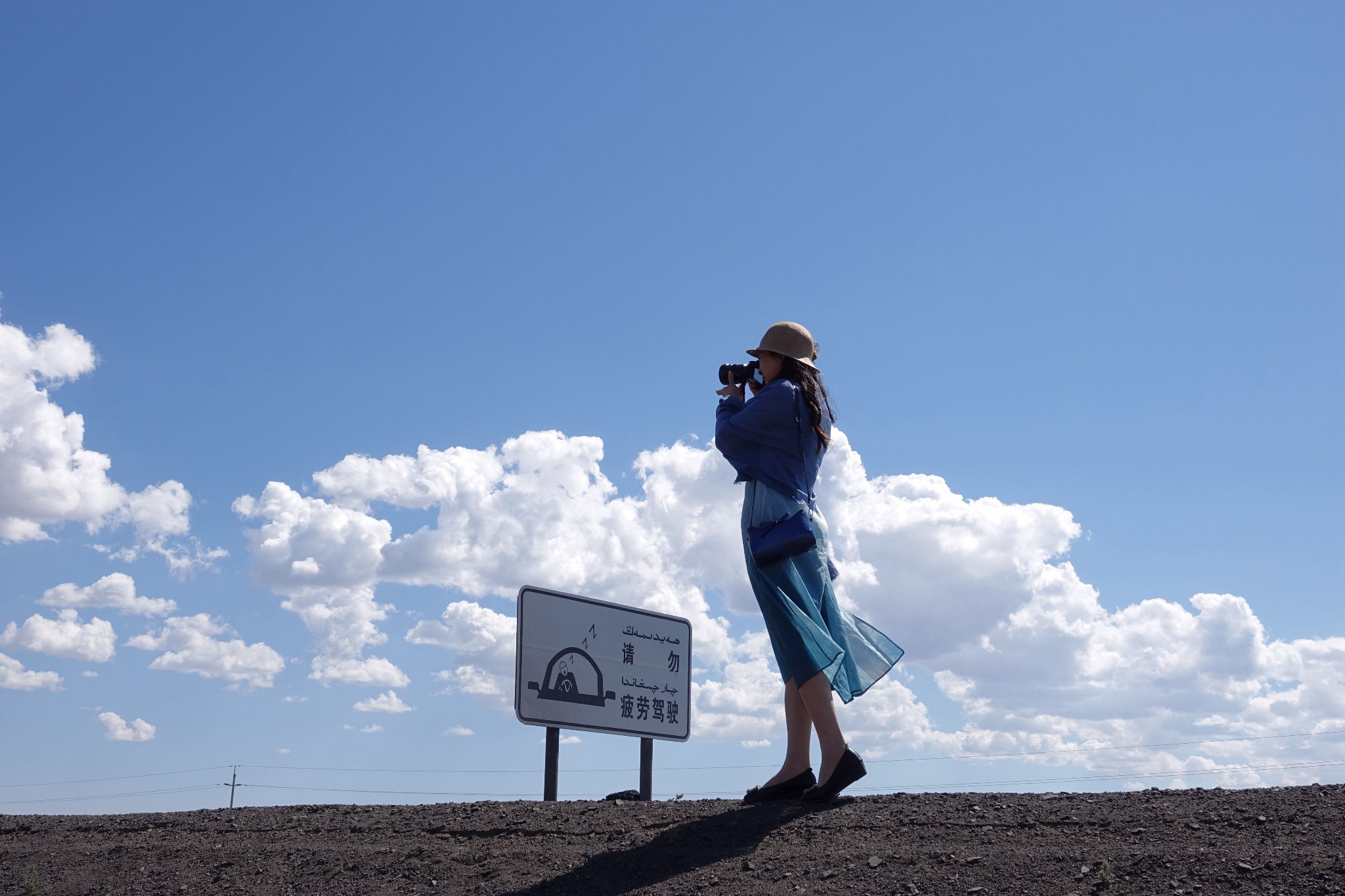 新疆公路状况很好,可就是限速。国道有80迈的还有60迈的,还区间测速隐藏测速相结合。师傅说,如果超速被拍到,回乌市处理违章很麻烦。所以路上走走停停,大家刚到新疆,什么都觉得新鲜,以拍照为乐。